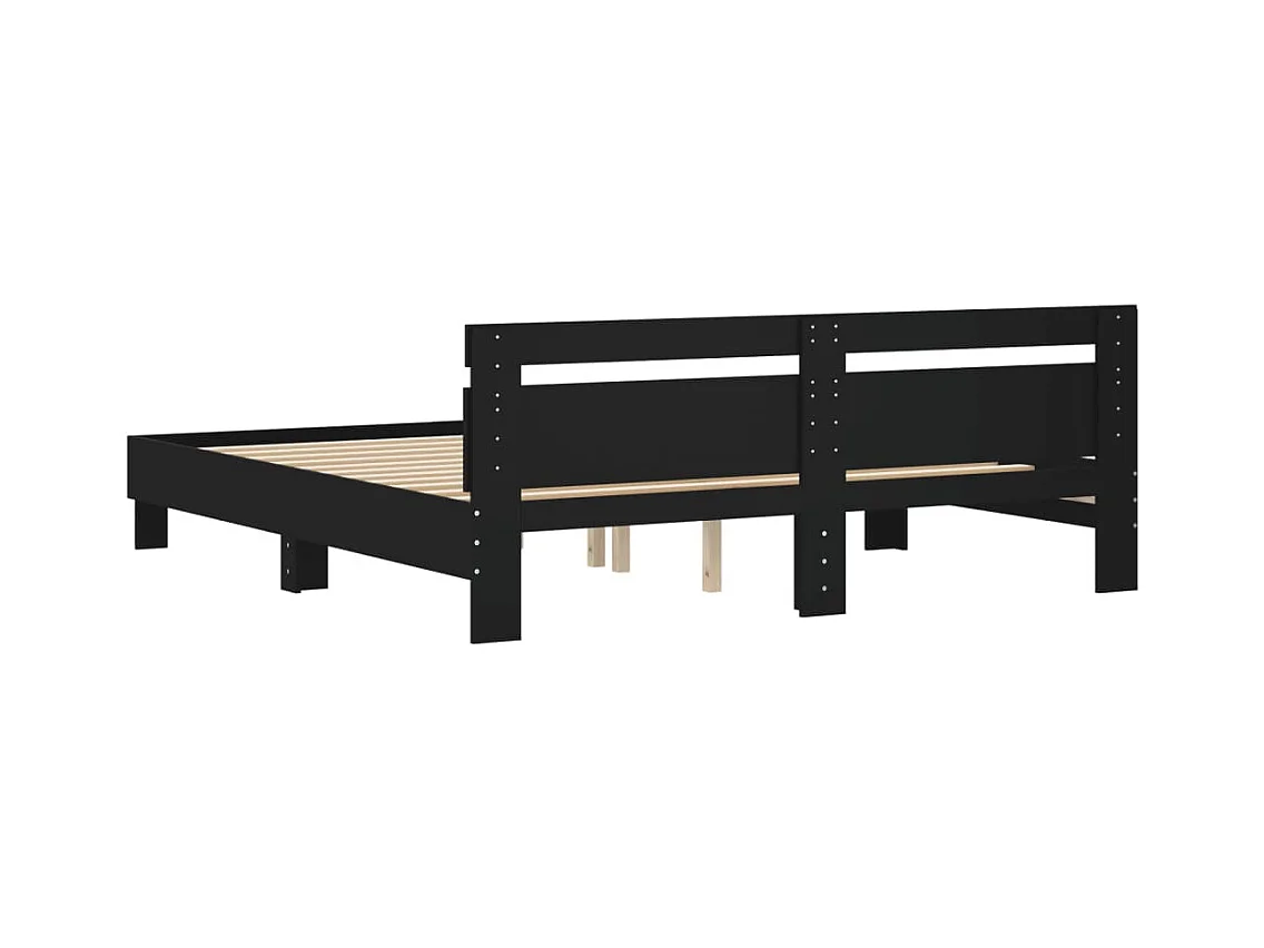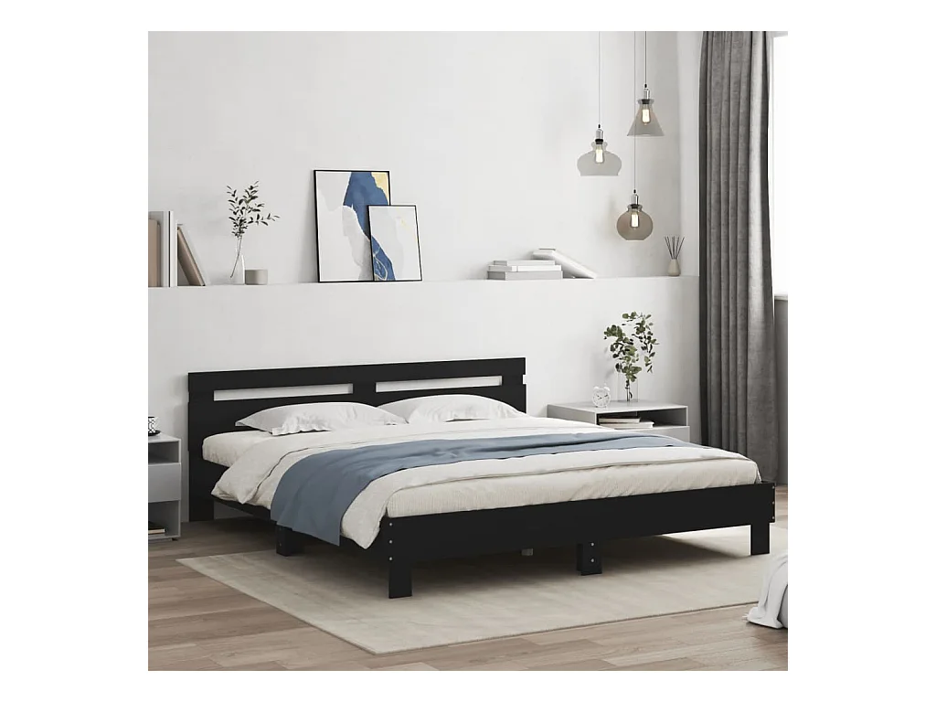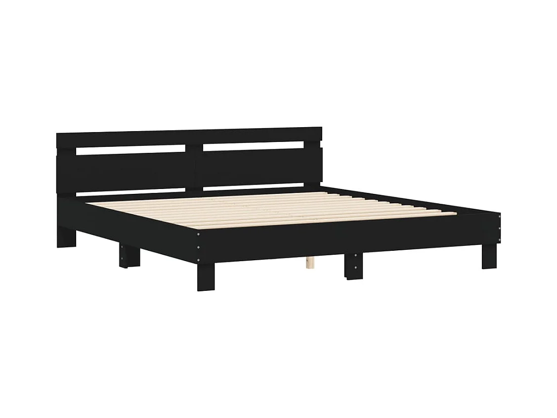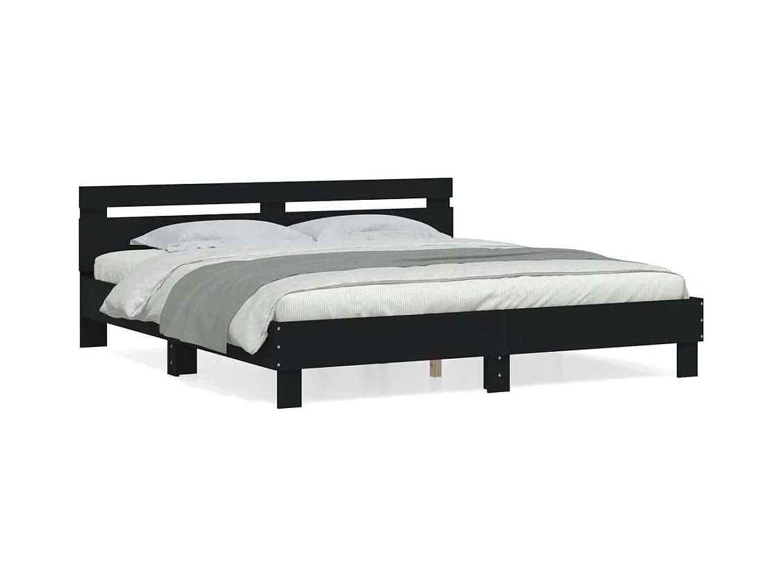 Cadre de lit avec tête de lit noir 180x200 bois d'ingénierie