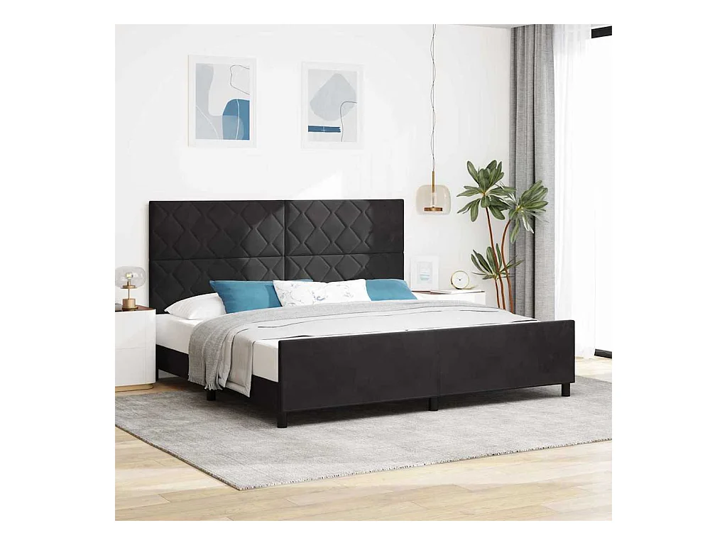 Lit-200x200 cm avec tête de lit Noir Velours EGGB58694