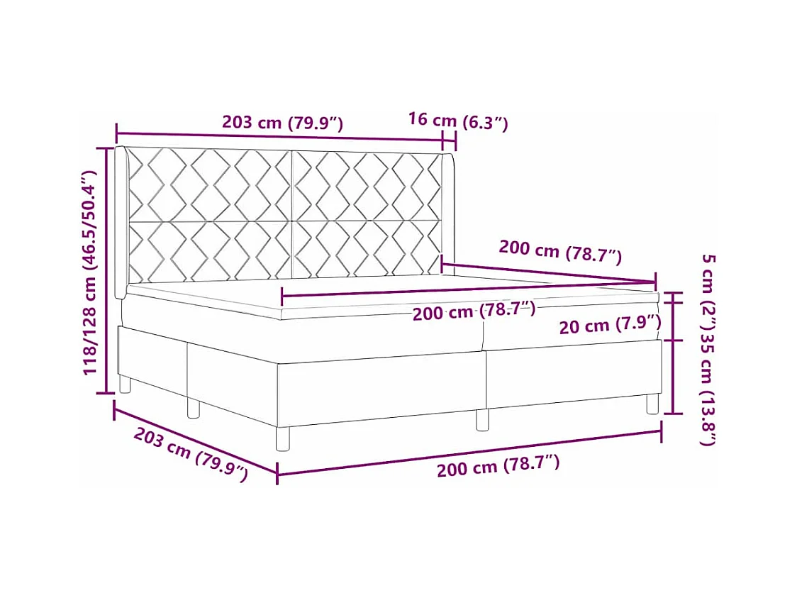 Cadre de lit avec tête de lit Noir 200 x 200 cm Velours