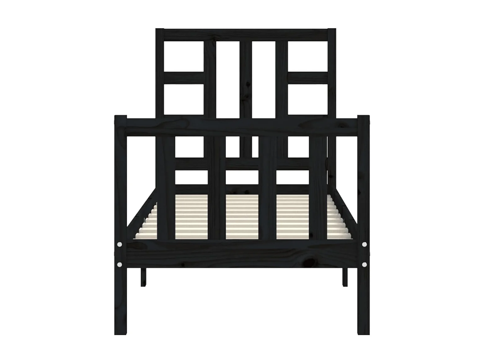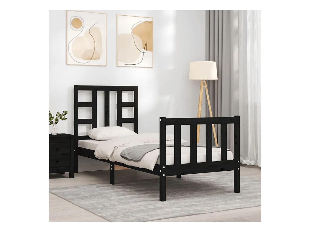 Cadre de lit avec tête de lit noir petit simple bois massif