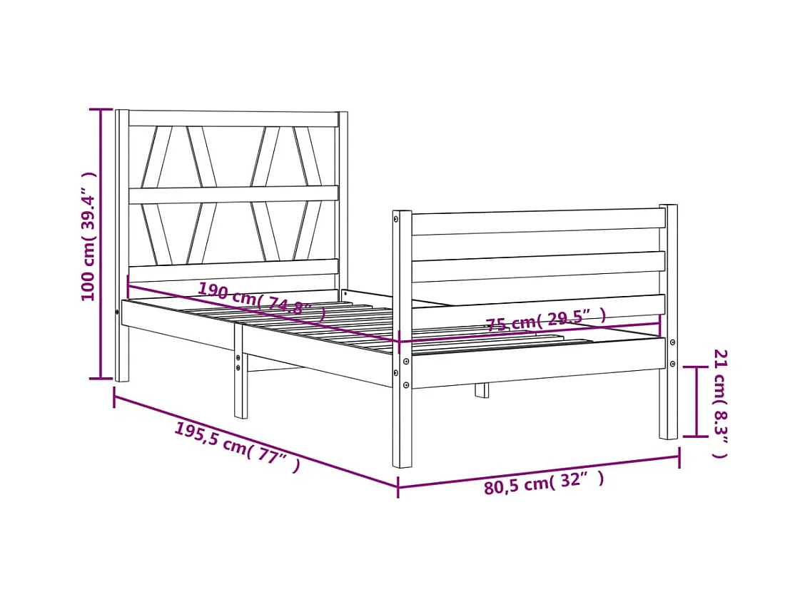 Cadre de lit Marron 100 x 200 cm Bois de pin massif
