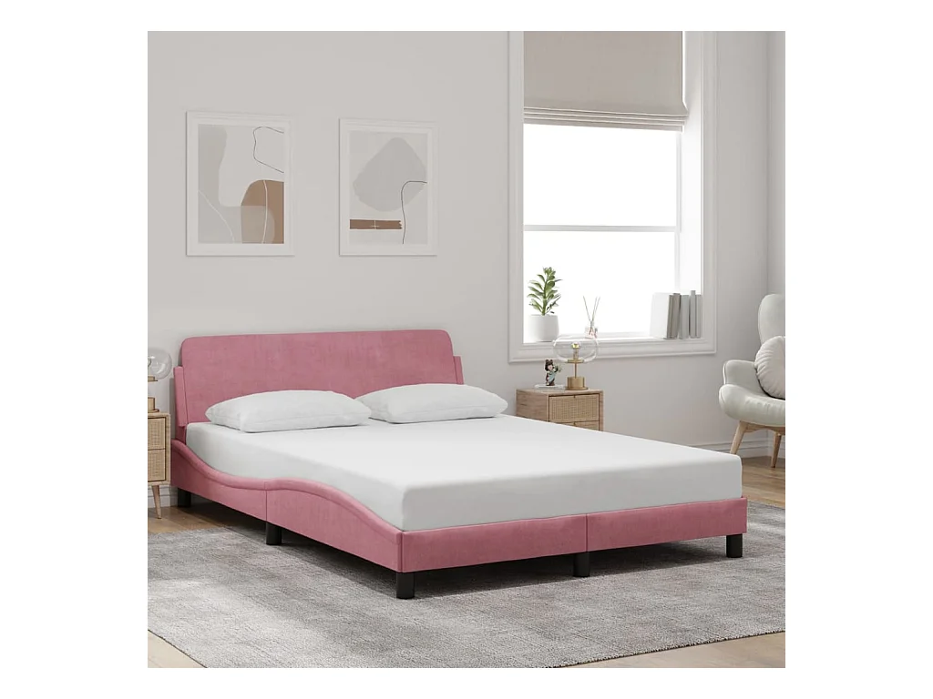 Cadre de lit et tête de lit sans matelas rose 140x200cm velours
