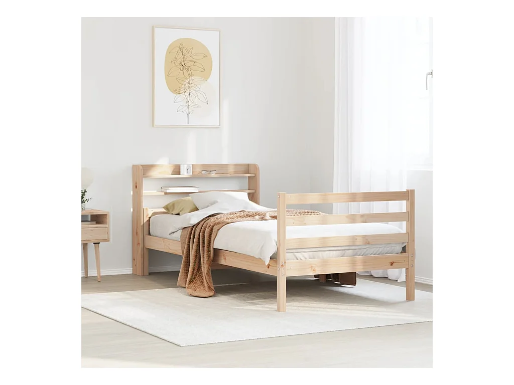 Lit bibliothèque sans matelas 100x200 cm bois massif de pin