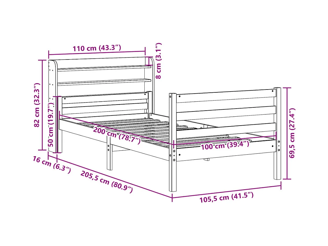 Cadre de lit et tête de lit 100x200 cm bois de pin massif