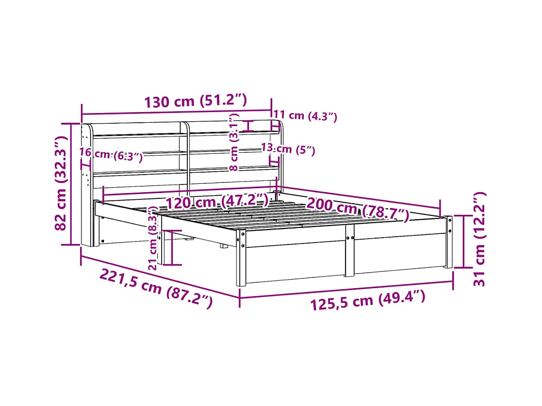Cadre de lit avec tête de lit sans matelas 120x200 cm