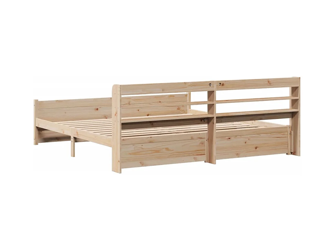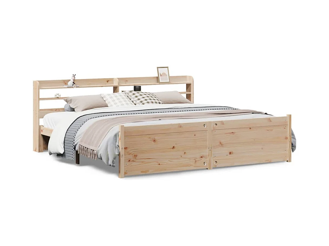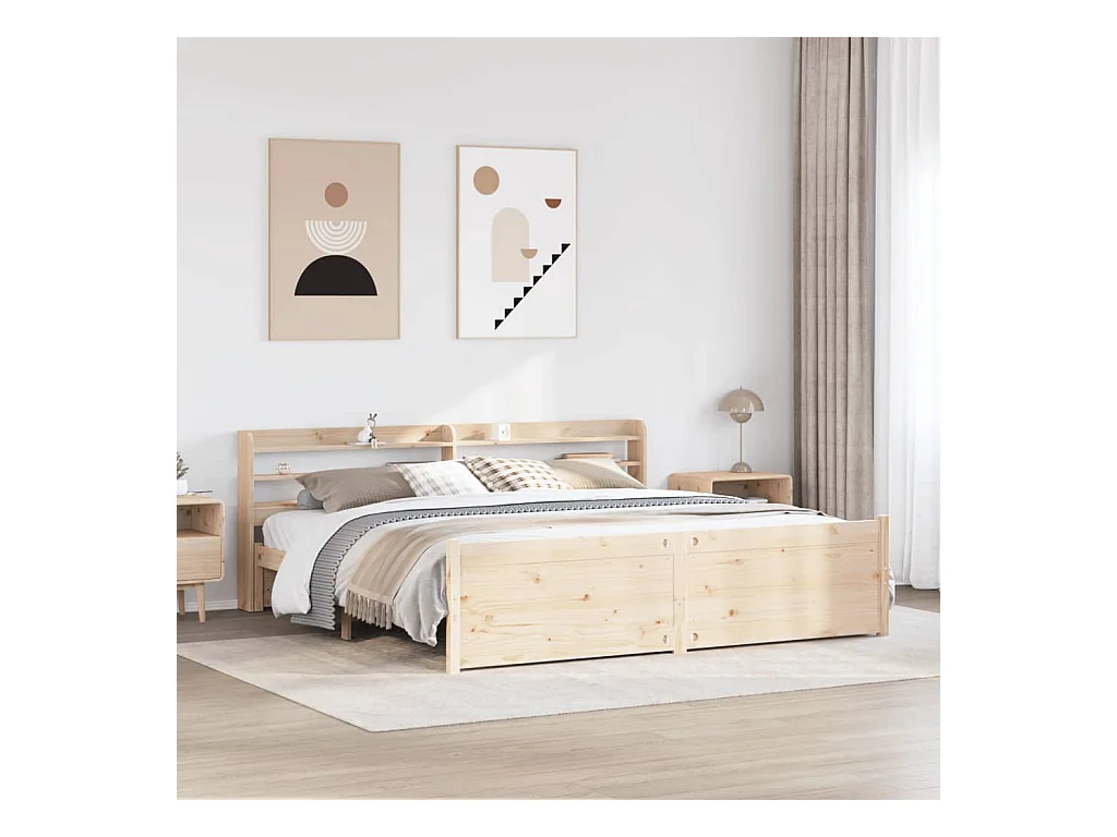 Lit bibliothèque sans matelas 200x200 cm bois massif de pin