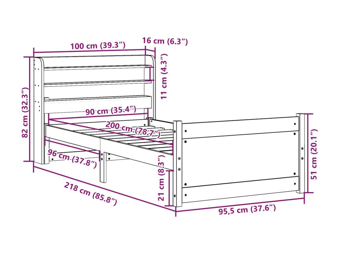 Cadre de lit avec tête de lit sans matelas 90x200 cm