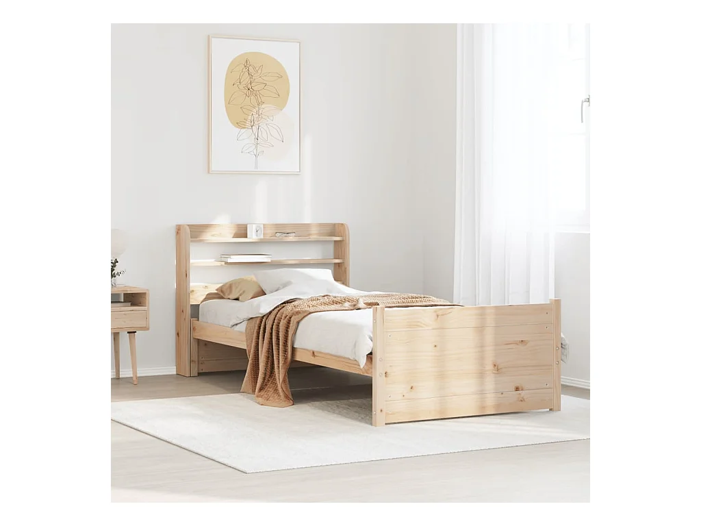 Lit bibliothèque sans matelas 90x200 cm bois de pin massif
