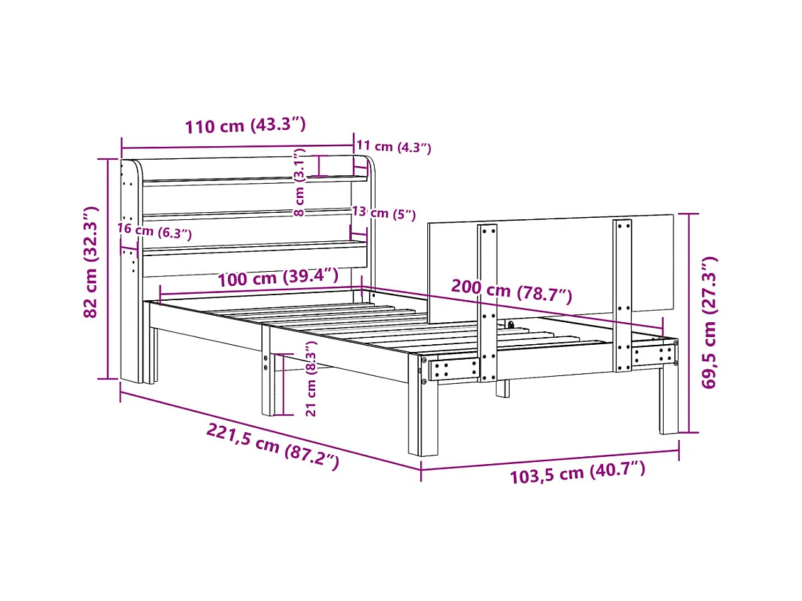 Cadre de lit sans matelas blanc 100x200 cm bois de pin massif