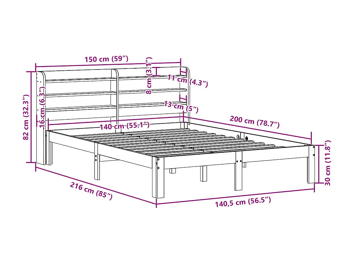 Cadre de lit sans matelas blanc 140x200 cm bois de pin massif