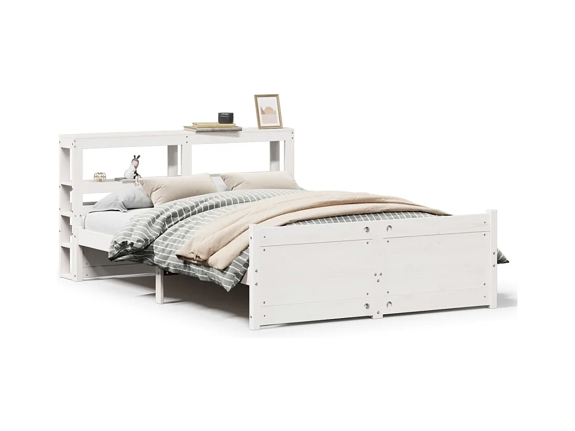 Lit bibliothèque sans matelas blanc 160x200 cm bois pin massif