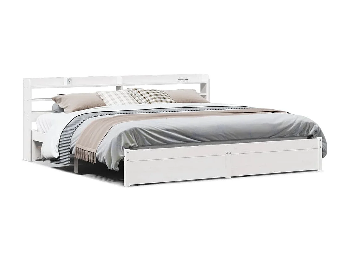 Cadre de lit et tête de lit blanc 180x200 cm bois de pin massif