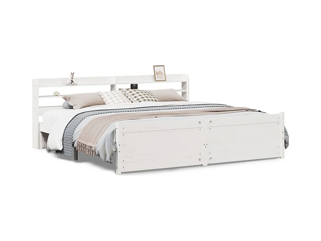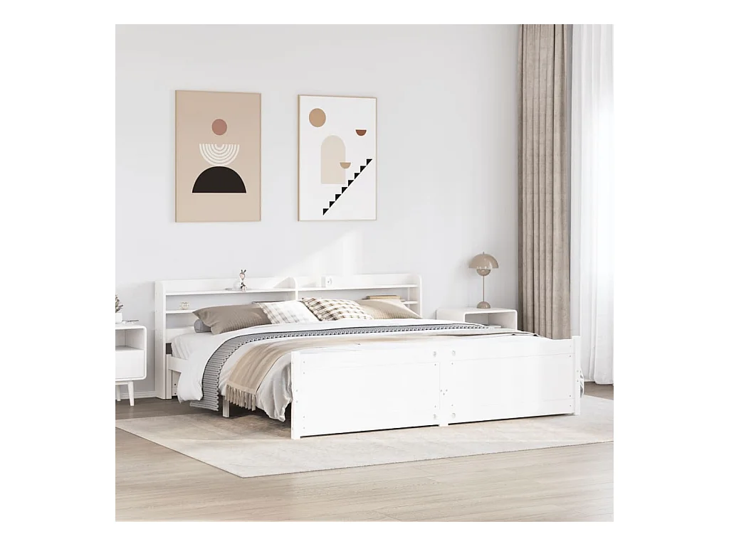 Cadre de lit avec tête de lit sans matelas blanc 200x200 cm