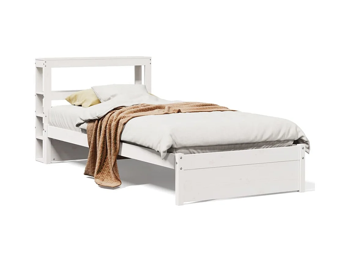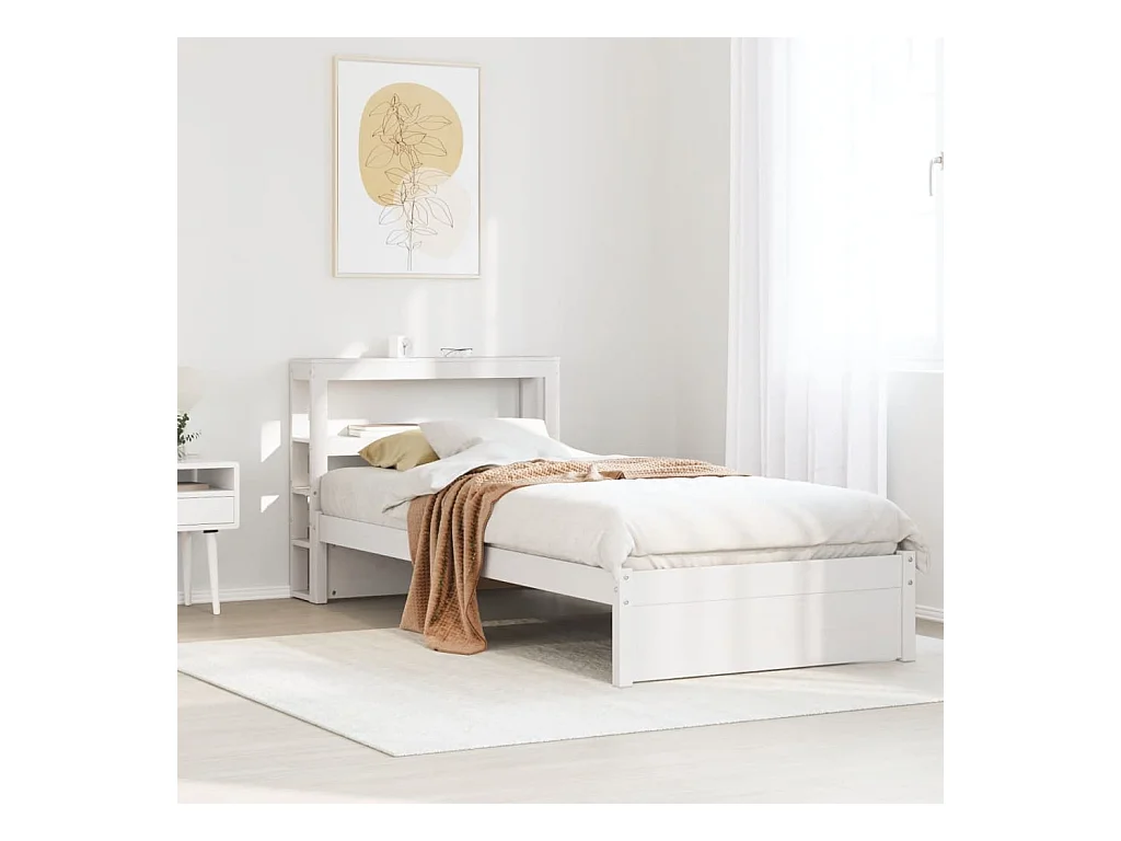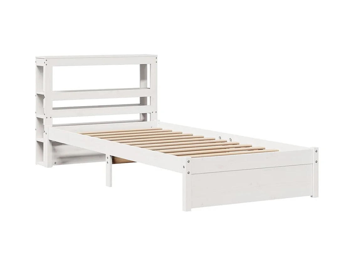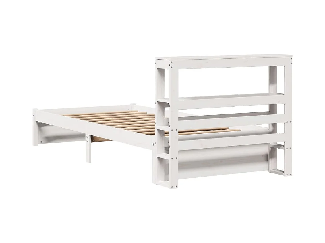 Lit bibliothèque sans matelas blanc 90x190cm bois de pin massif