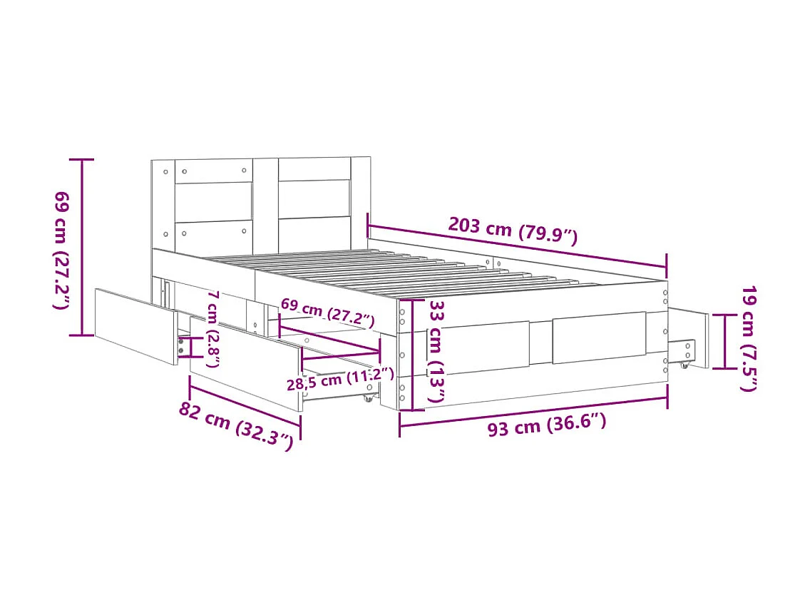 Cadre de lit avec tête de lit sans matelas blanc 90x200 cm