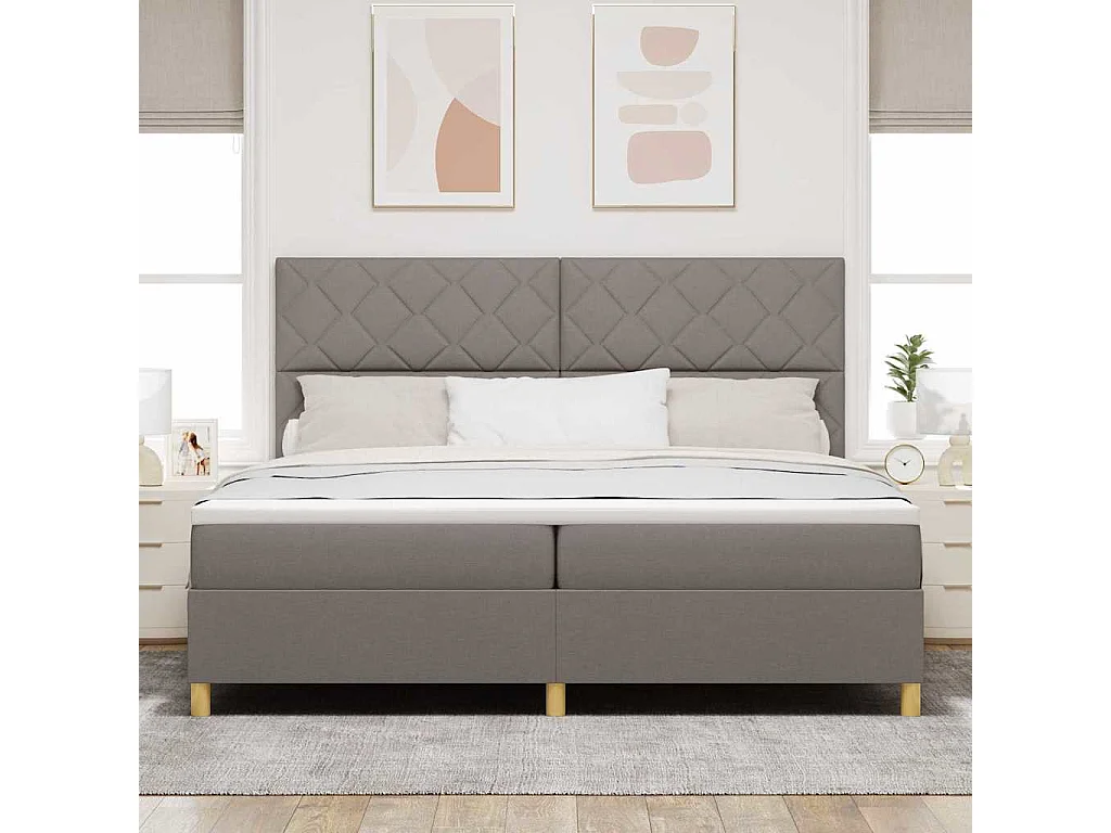 Cadre de lit ottoman avec matelas taupe 200x200 cm tissu