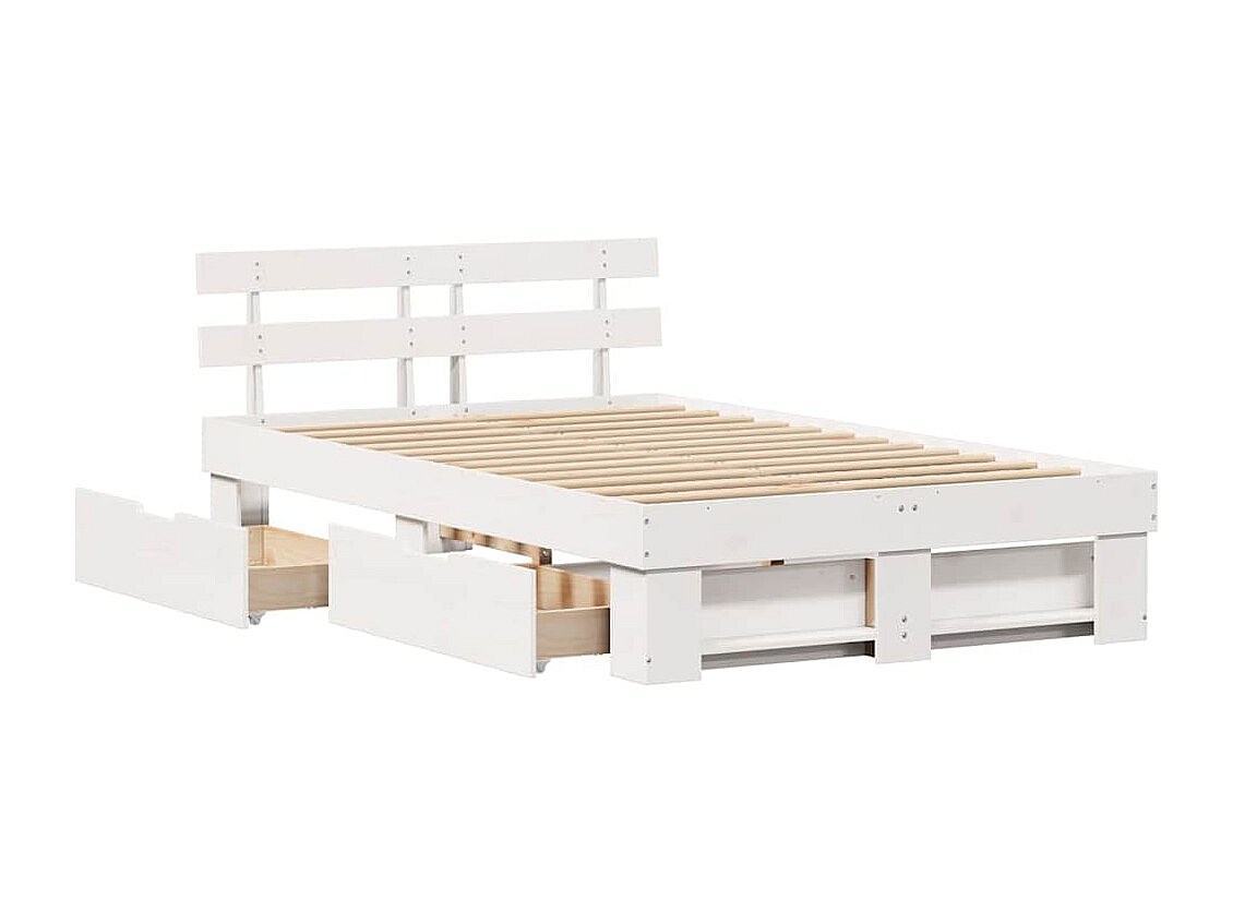 Cadre de lit avec tiroir Blanc 120 x 190 cm Bois massif en pin