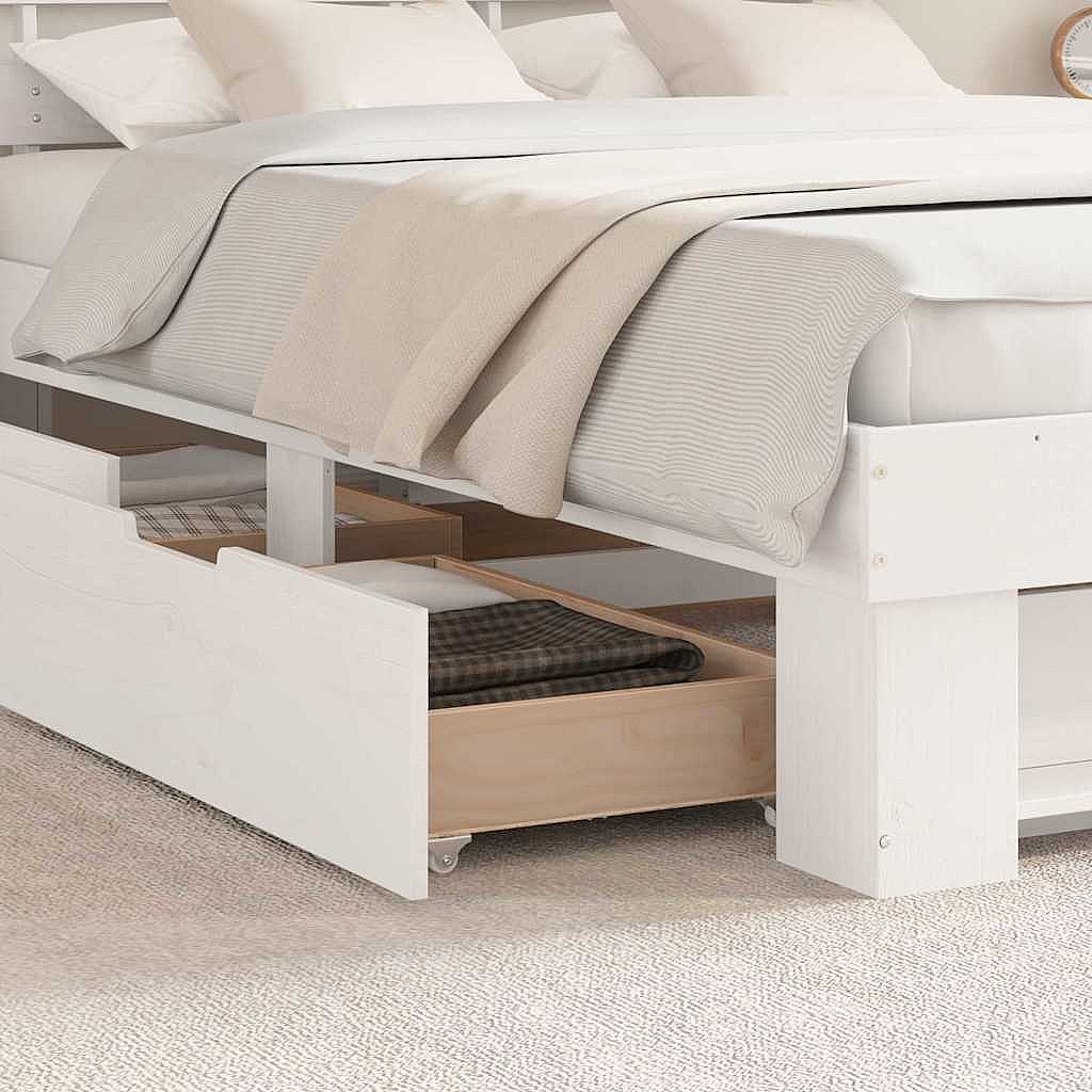Cadre de lit avec tiroir Blanc 160 x 200 cm Bois massif en pin