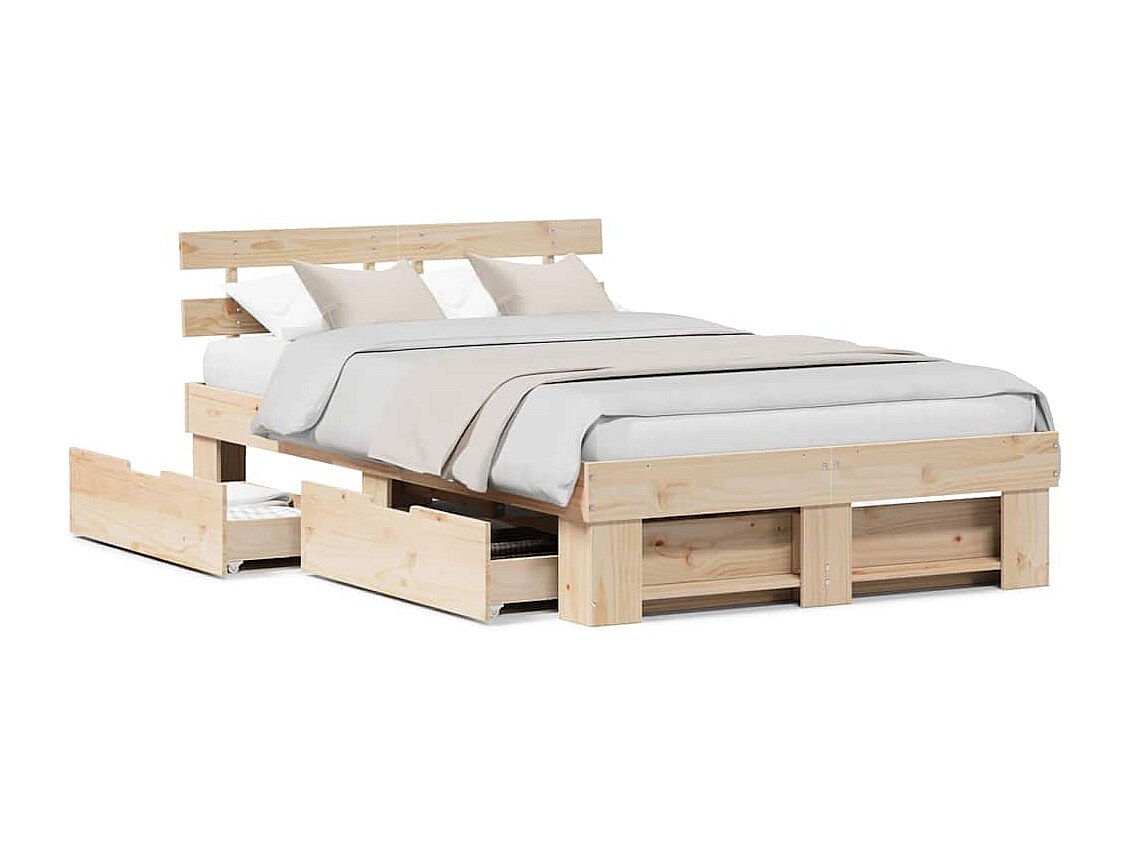 Cadre de lit avec tiroir Marron 140 x 190 cm Bois massif en pin