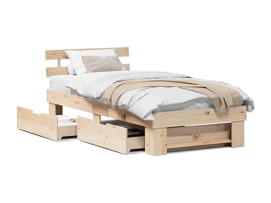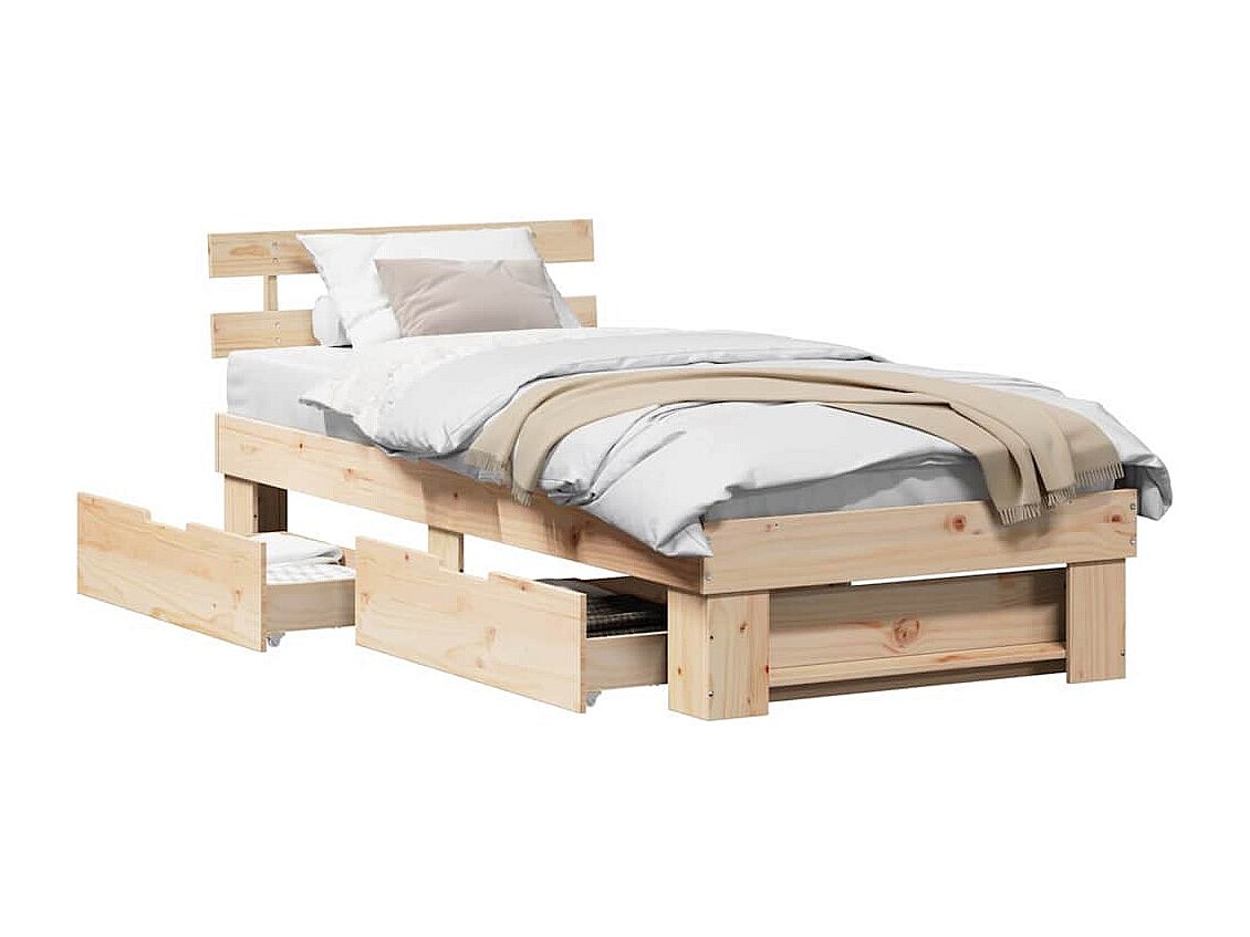 Cadre de lit avec tiroir Marron 75 x 190 cm Bois massif en pin