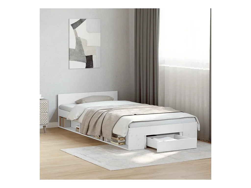 Cadre de lit avec tiroir sans matelas blanc 75x190 cm