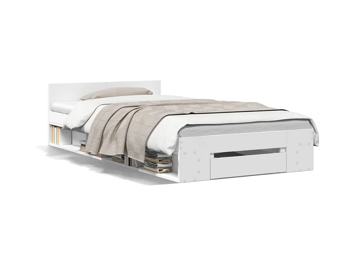 Cadre de lit avec tiroirs sans matelas blanc 75x190 cm