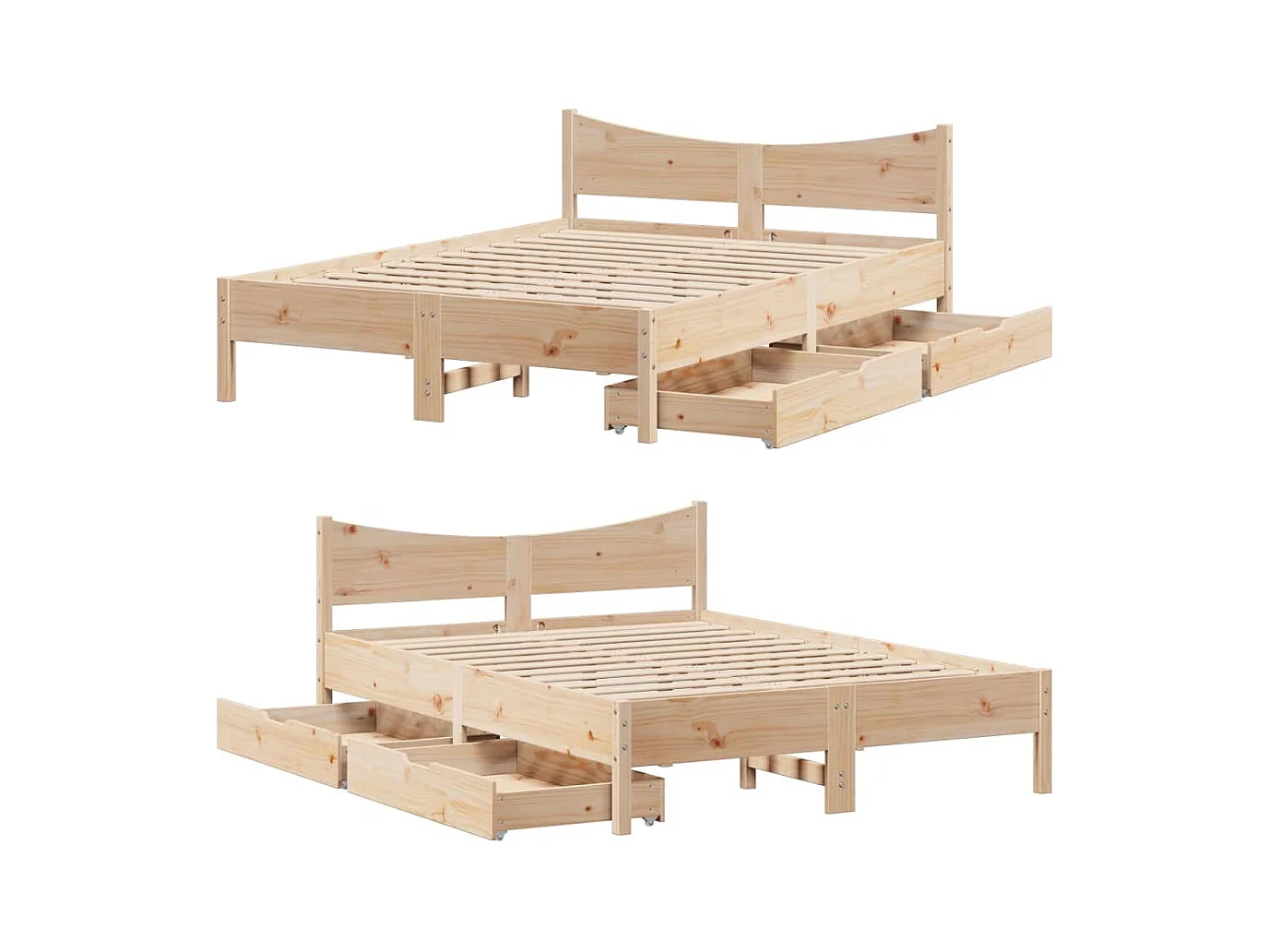 Cadre de lit avec tiroirs 135x190 cm Bois de pin massif