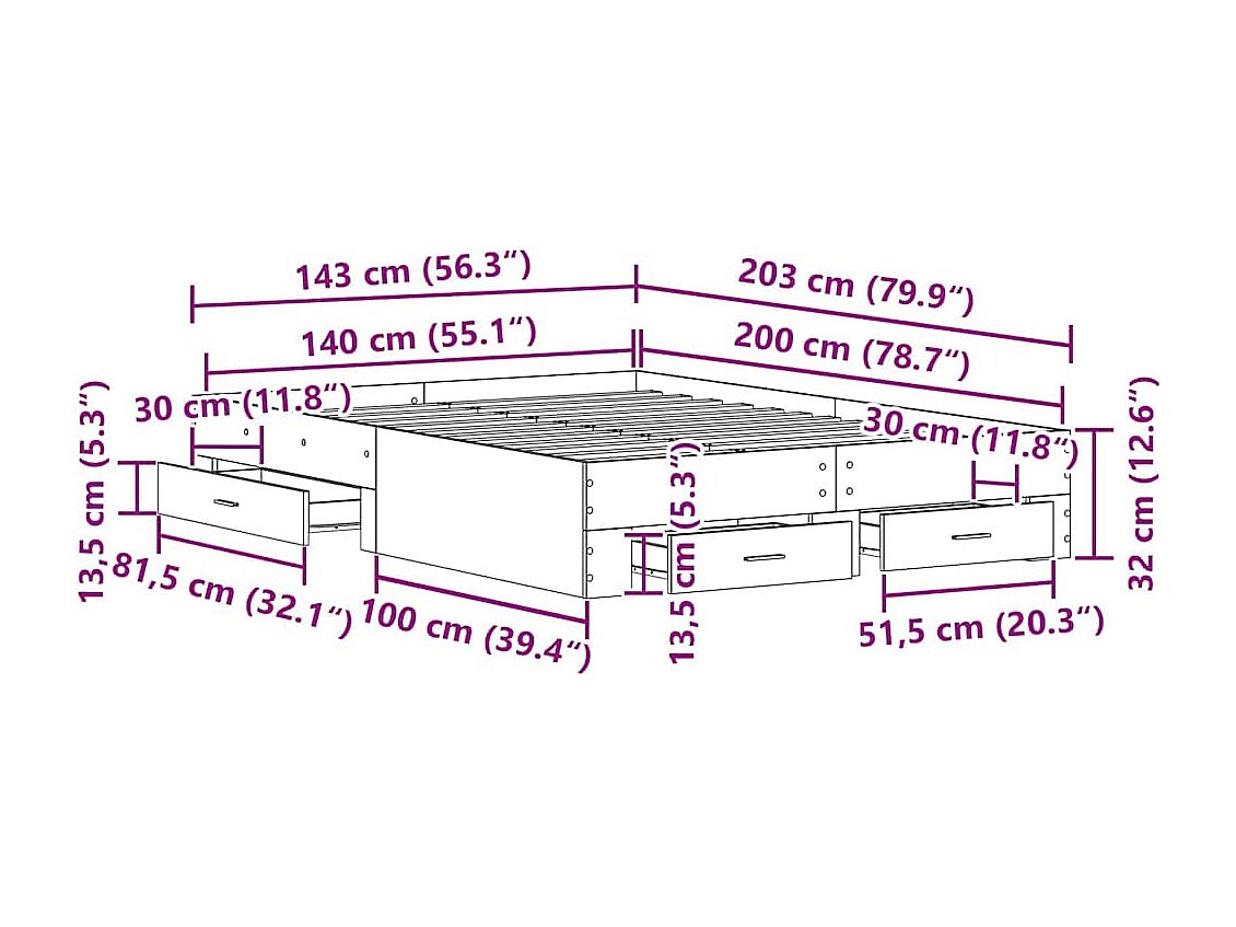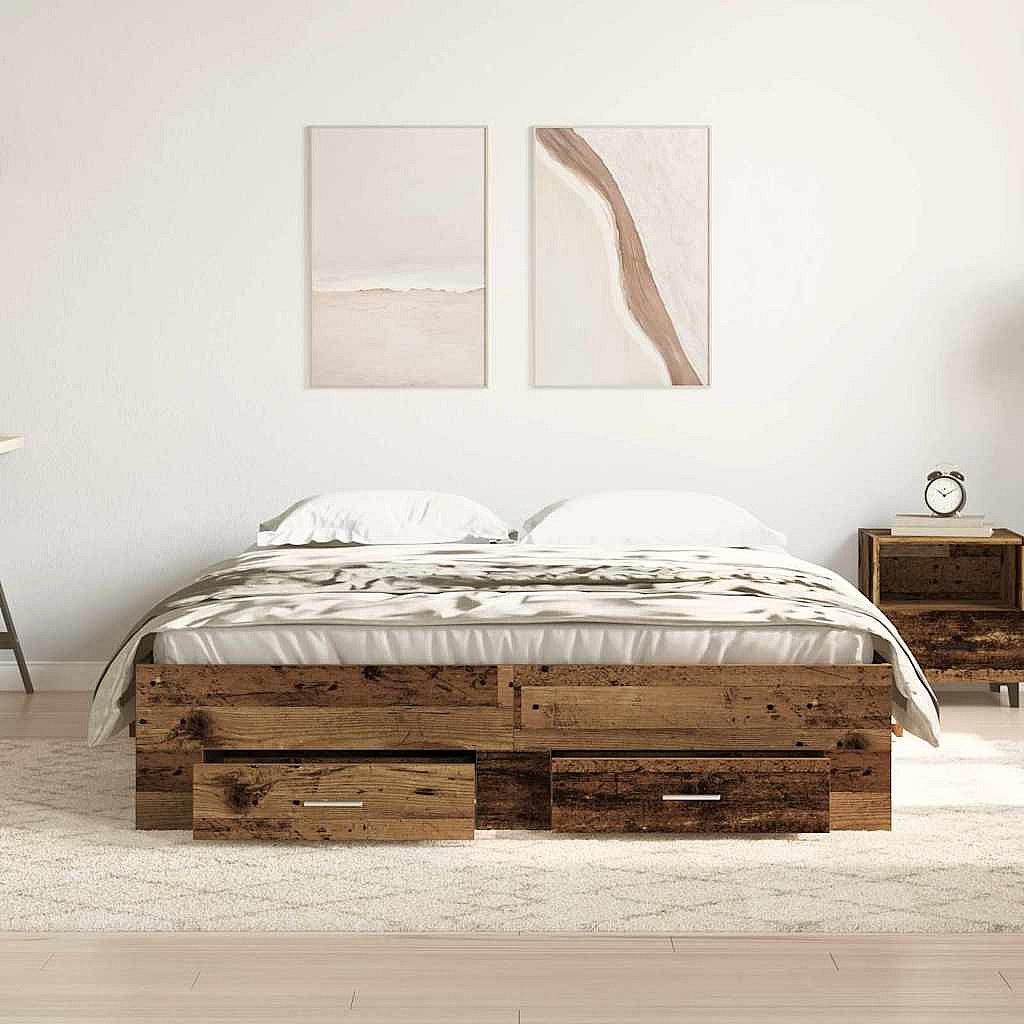 Cadre de lit avec tiroirs avec tiroir Bois ancien 140 x 200 cm