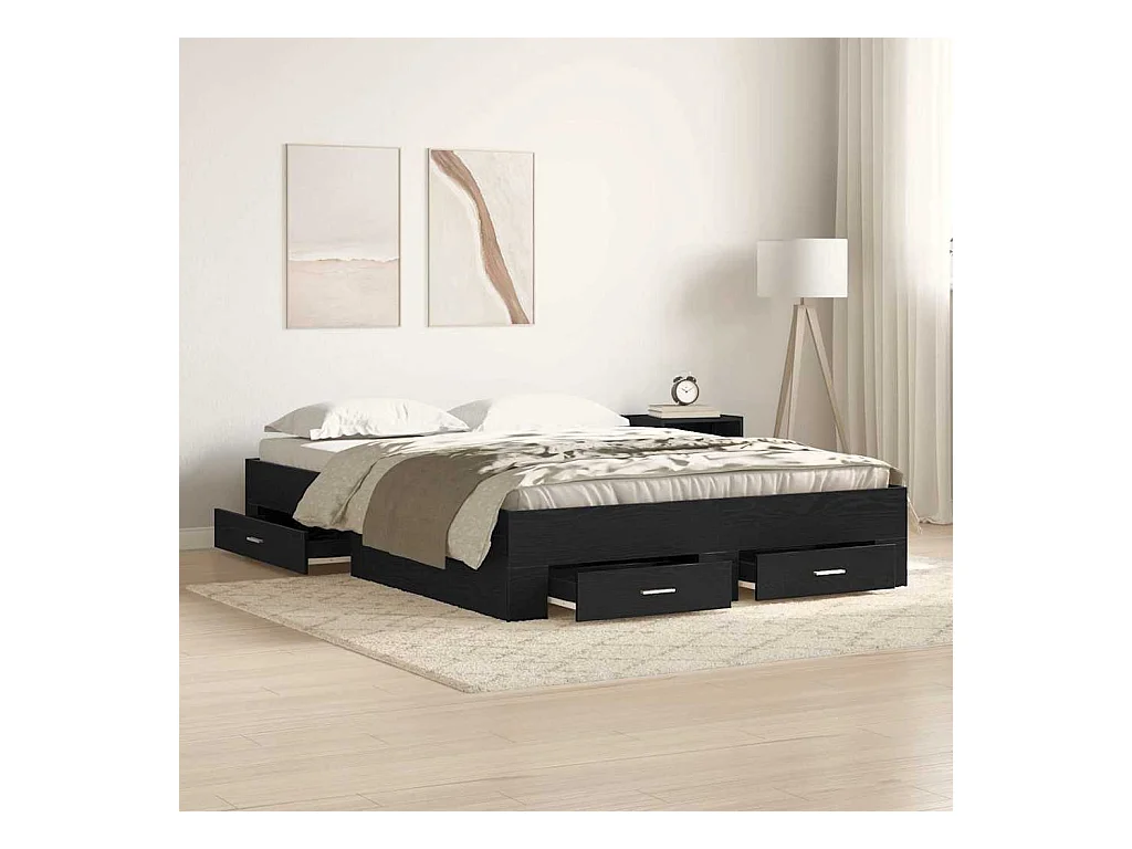 Cadre de lit avec tiroirs avec tiroir Chêne noir 140 x 190 cm