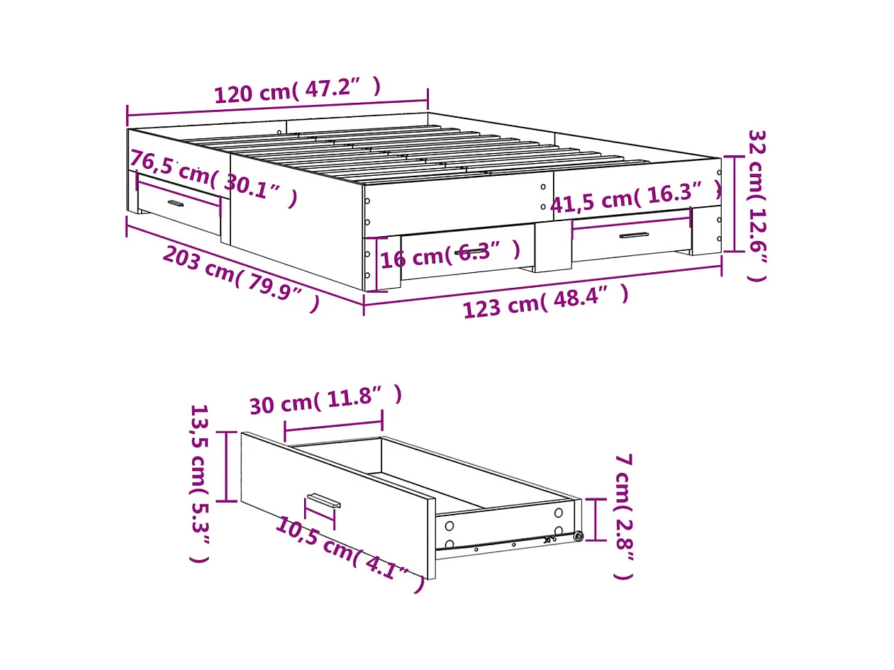 Cadre de lit avec tiroirs sans matelas blanc 120x200 cm