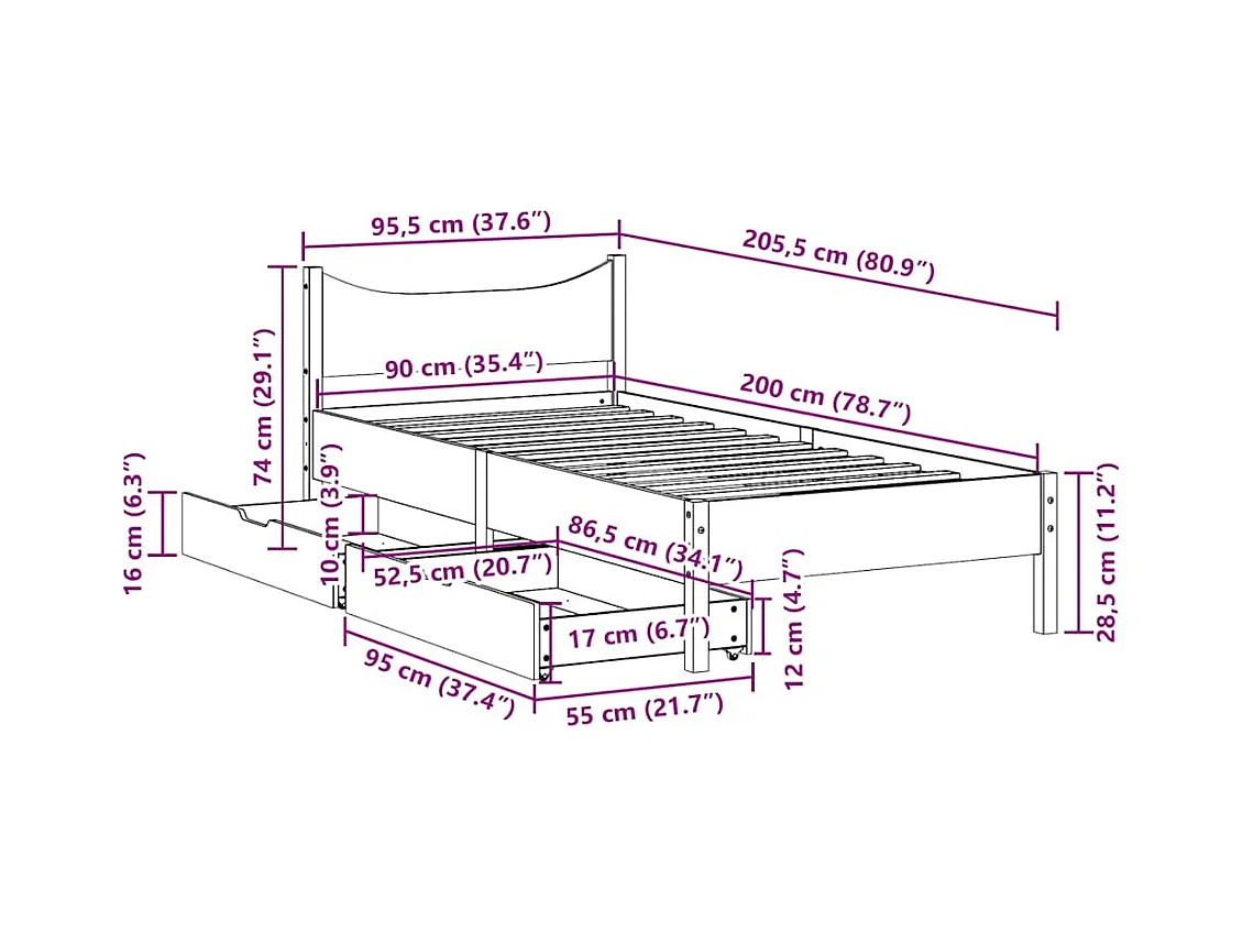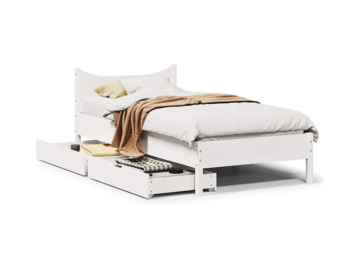 Cadre de lit avec tiroirs blanc 90x200 cm bois de pin massif