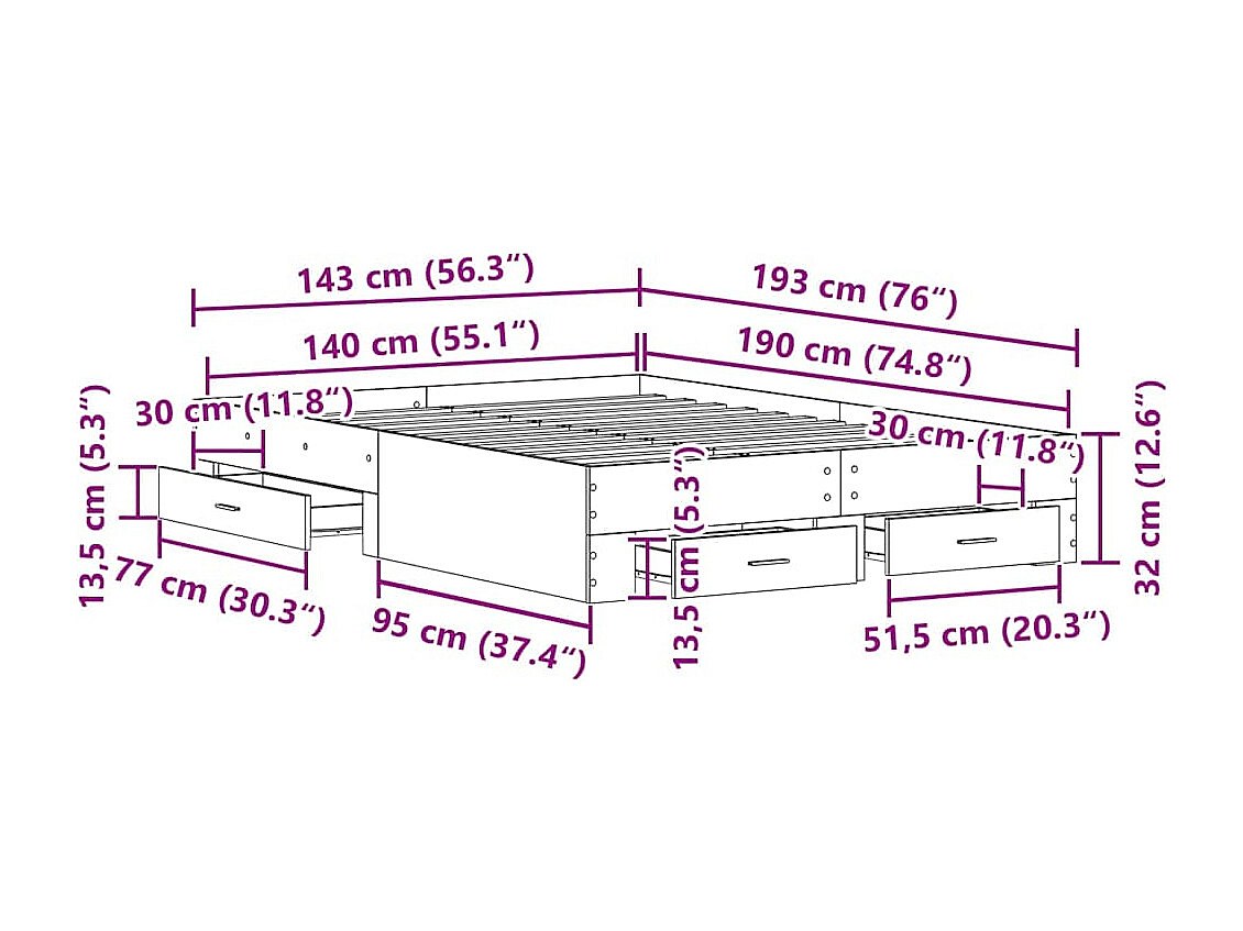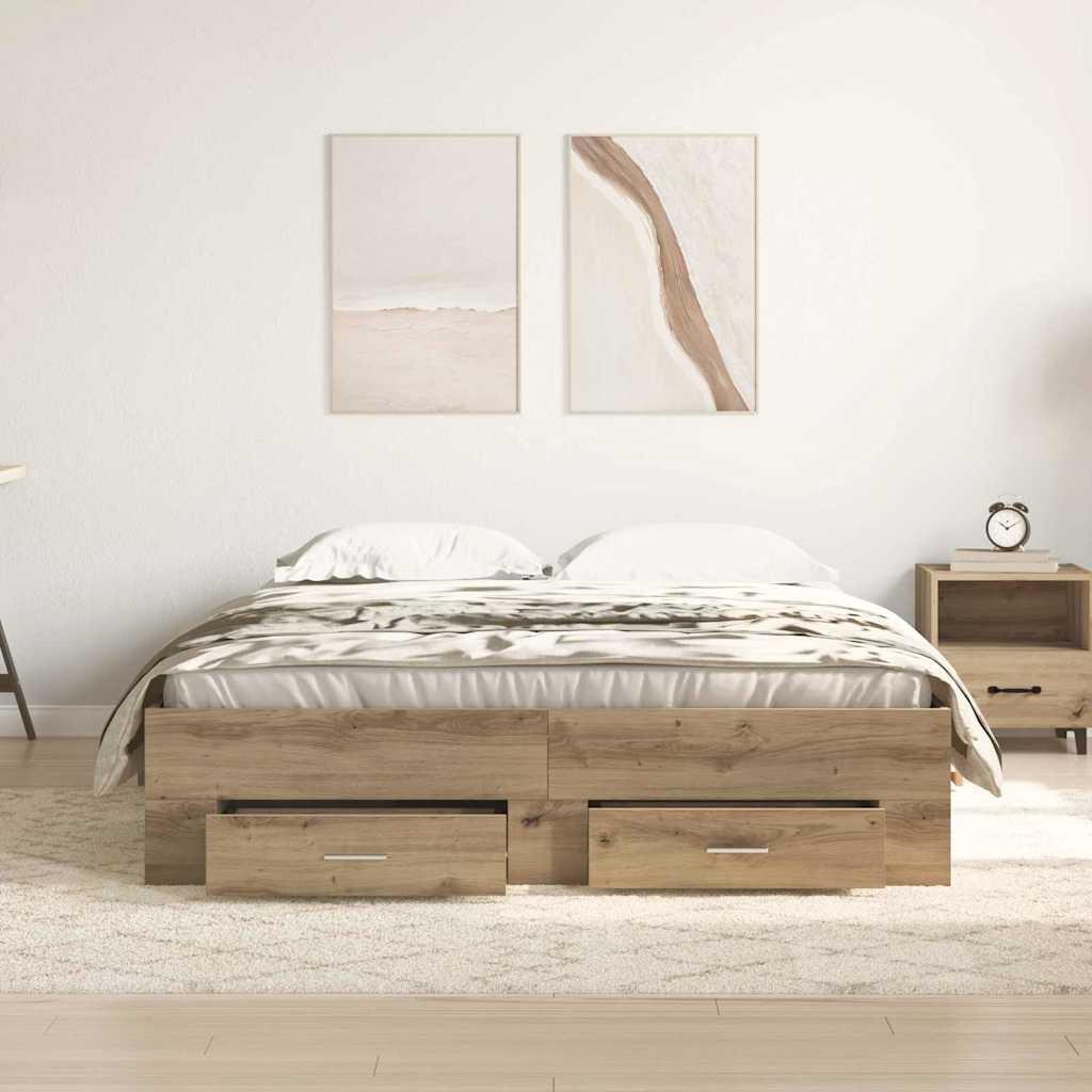 Lit double et tiroirs chêne sonoma 140x190 cm bois ingénierie FR71386