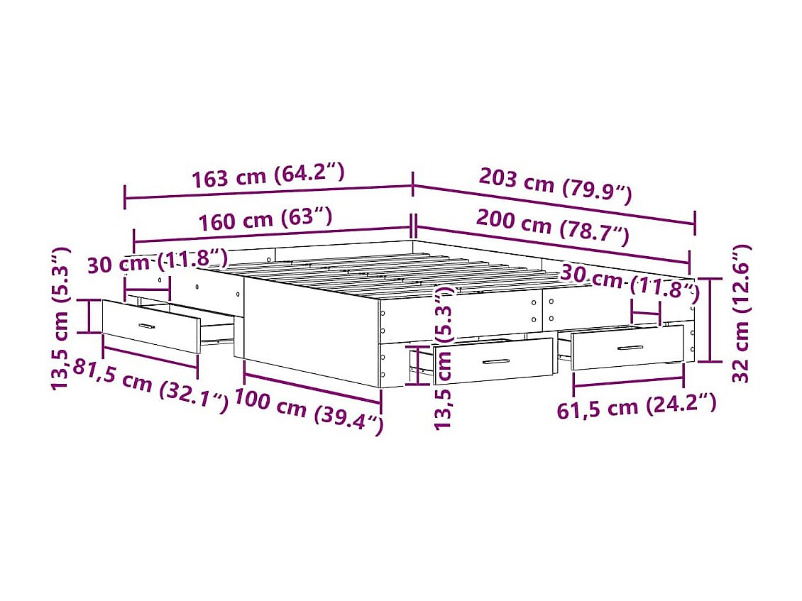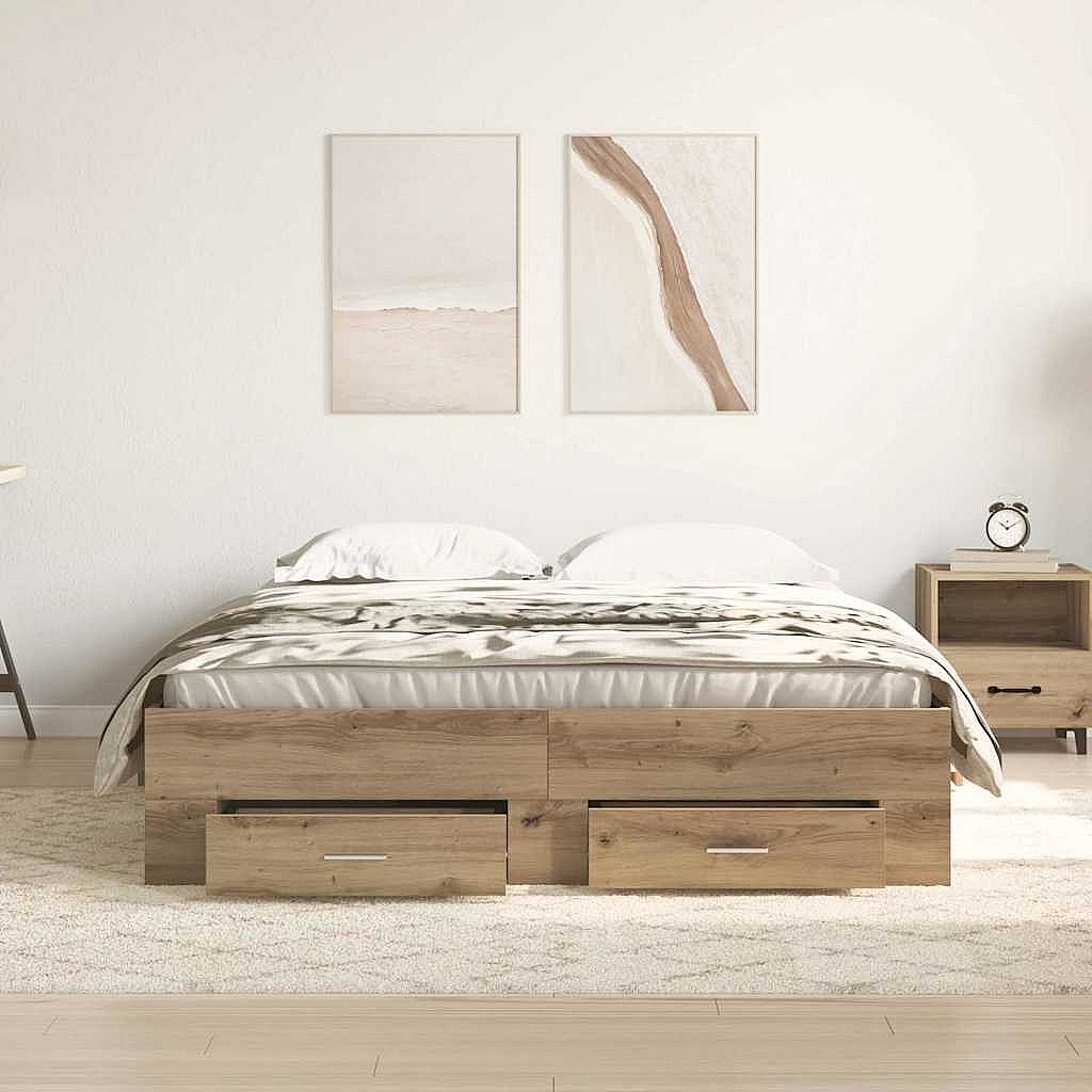Cadre de lit avec tiroirs chêne artisanal 160 x 200 cm