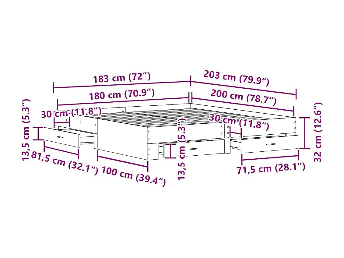 Cadre de lit avec tiroirs chêne artisanal 180 x 200 cm