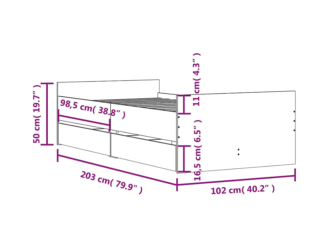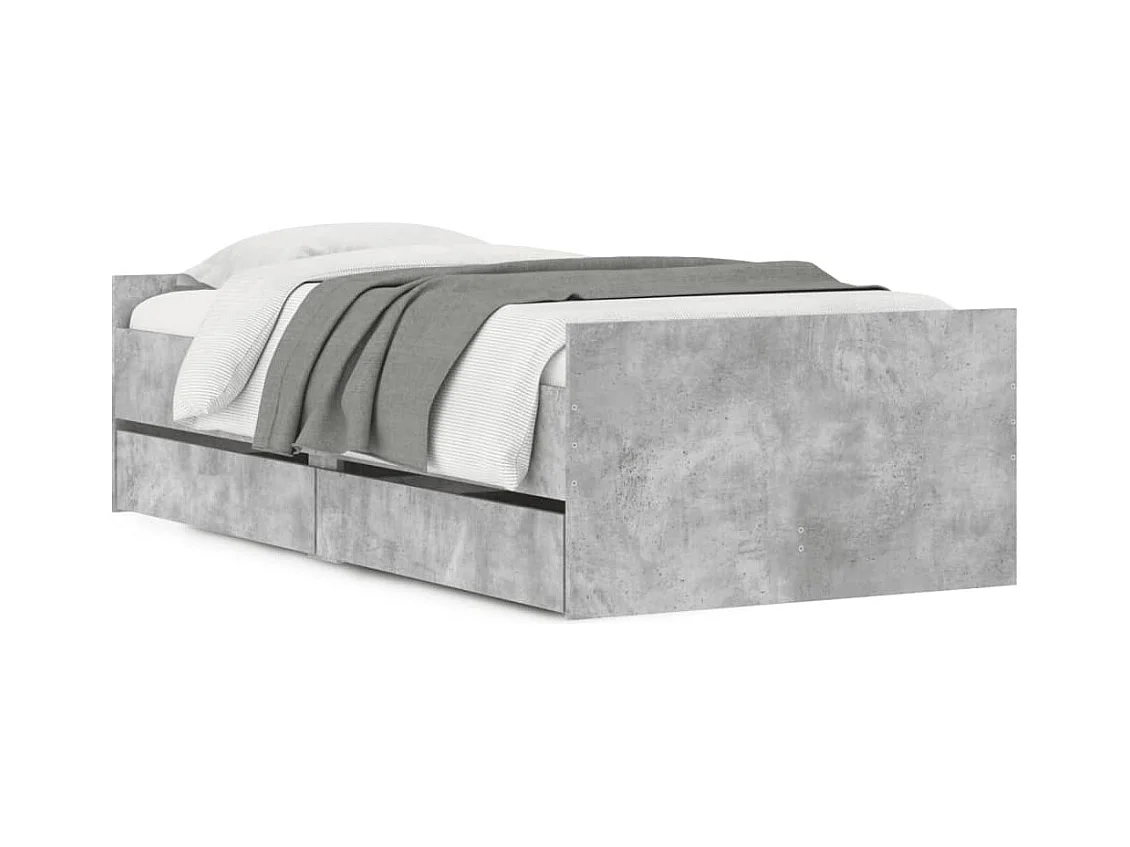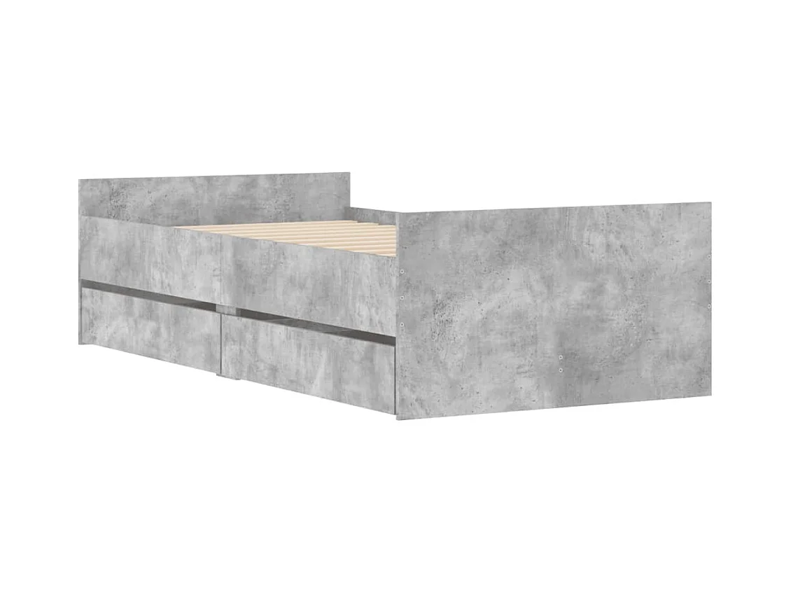 Cadre de lit avec tiroirs sans matelas gris béton 100x200 cm
