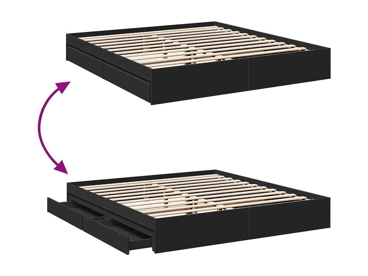 Cadre de lit avec tiroirs sans matelas noir 200x200 cm