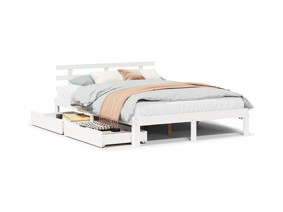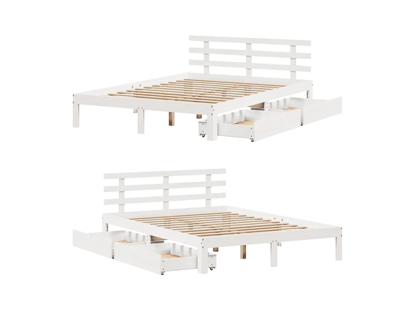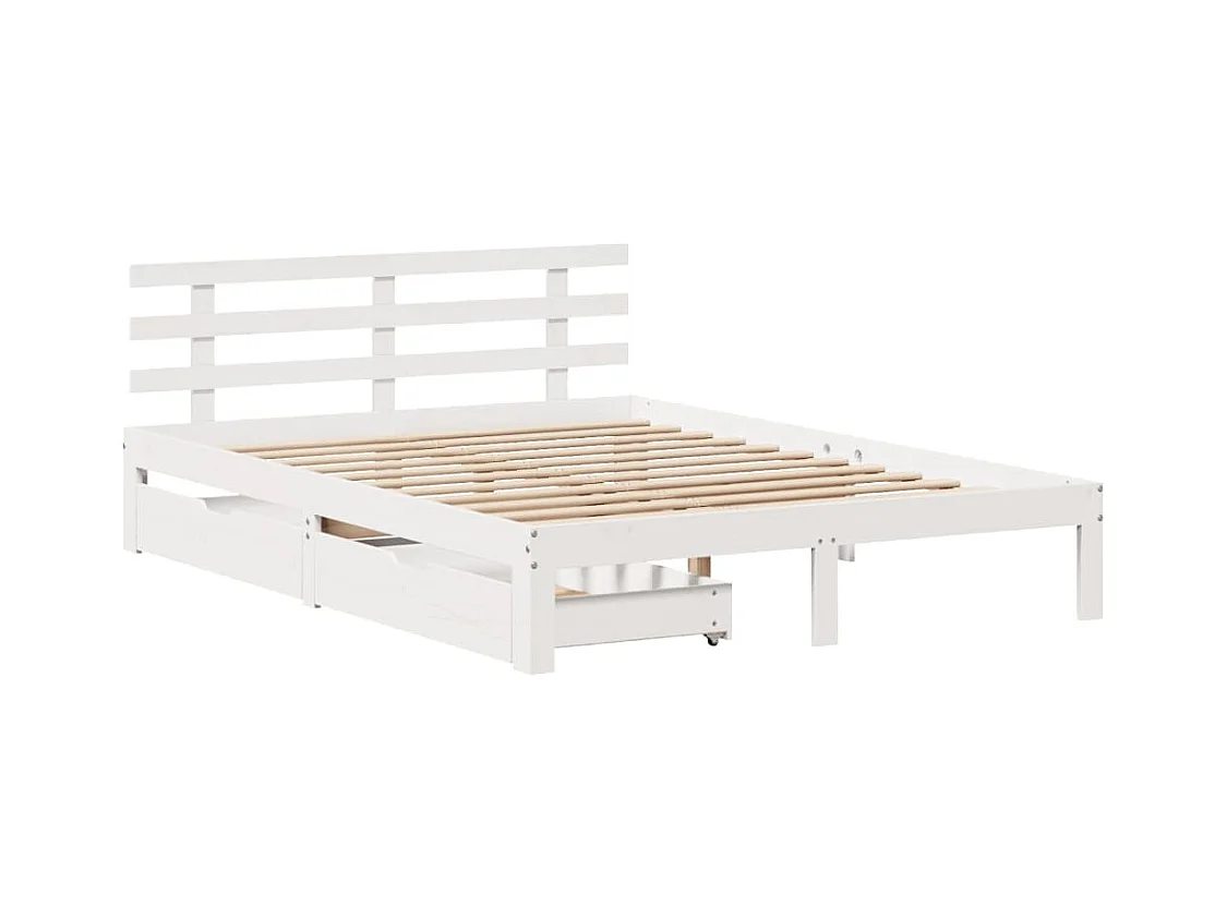 Cadre de lit avec tiroirs sans matelas blanc 150x200 cm