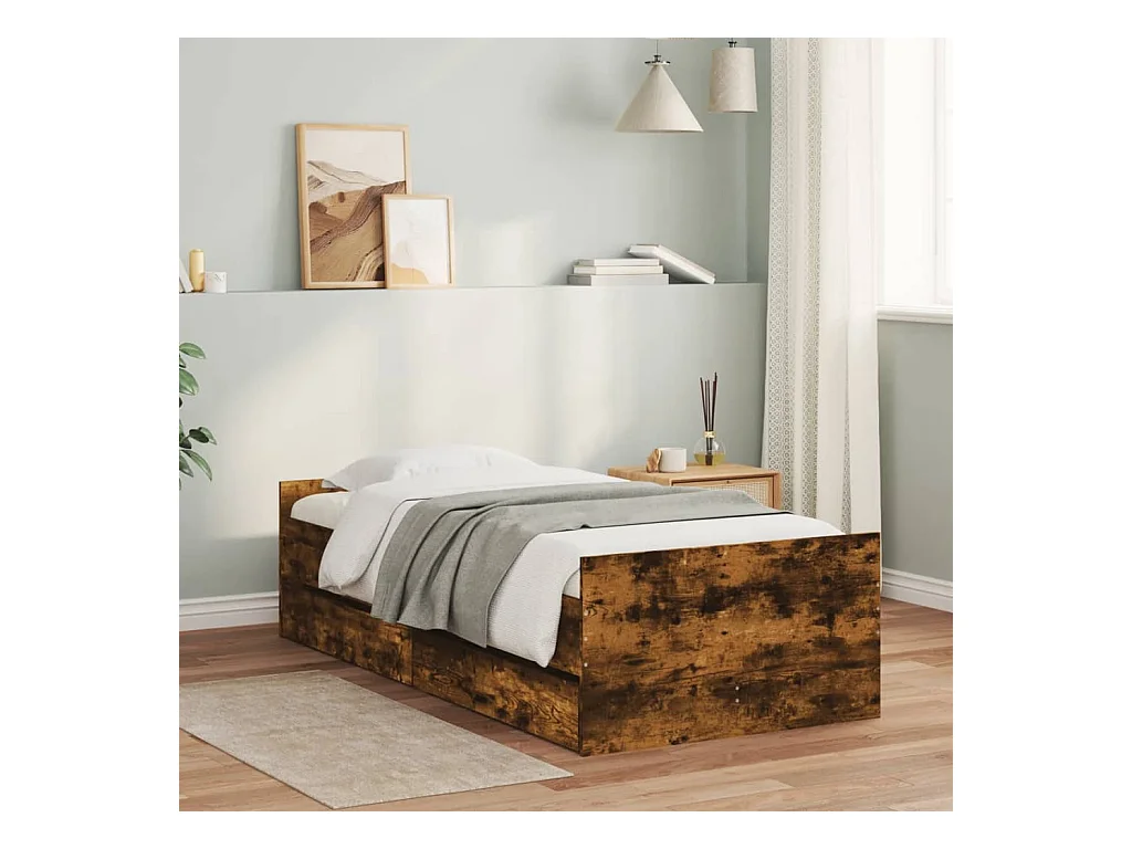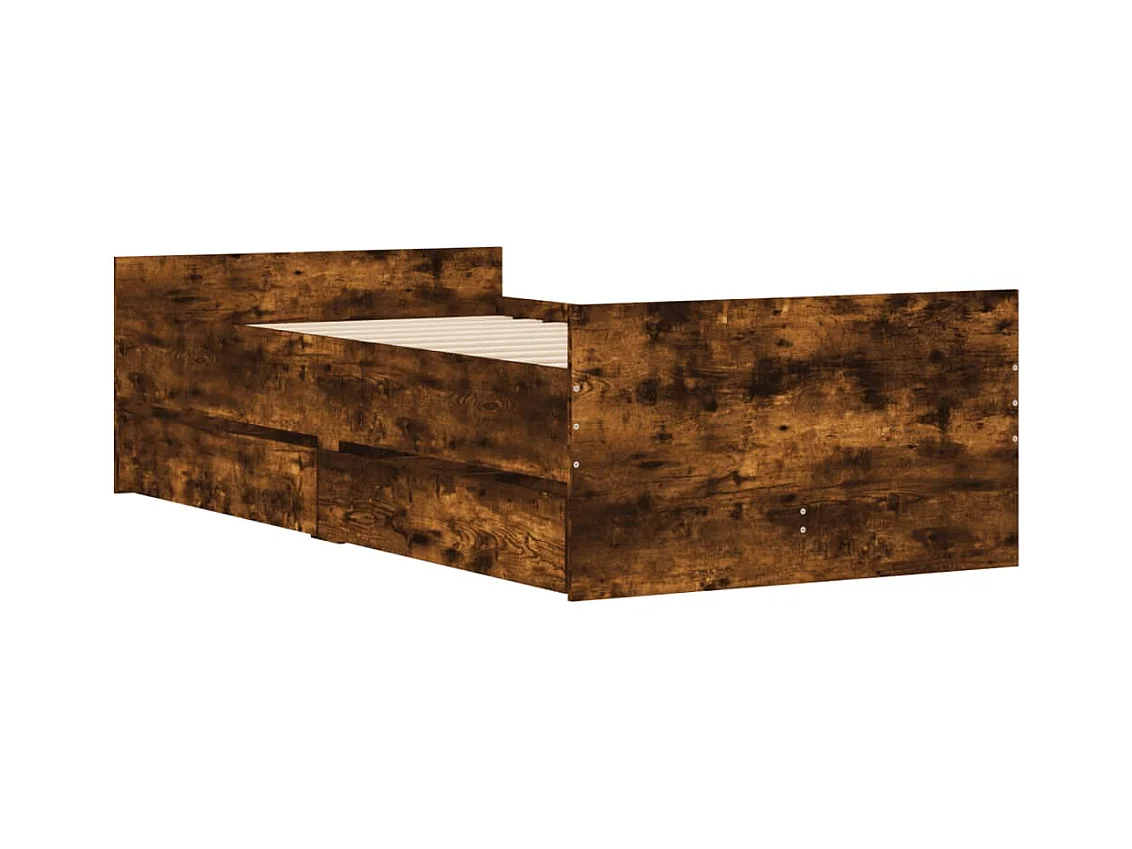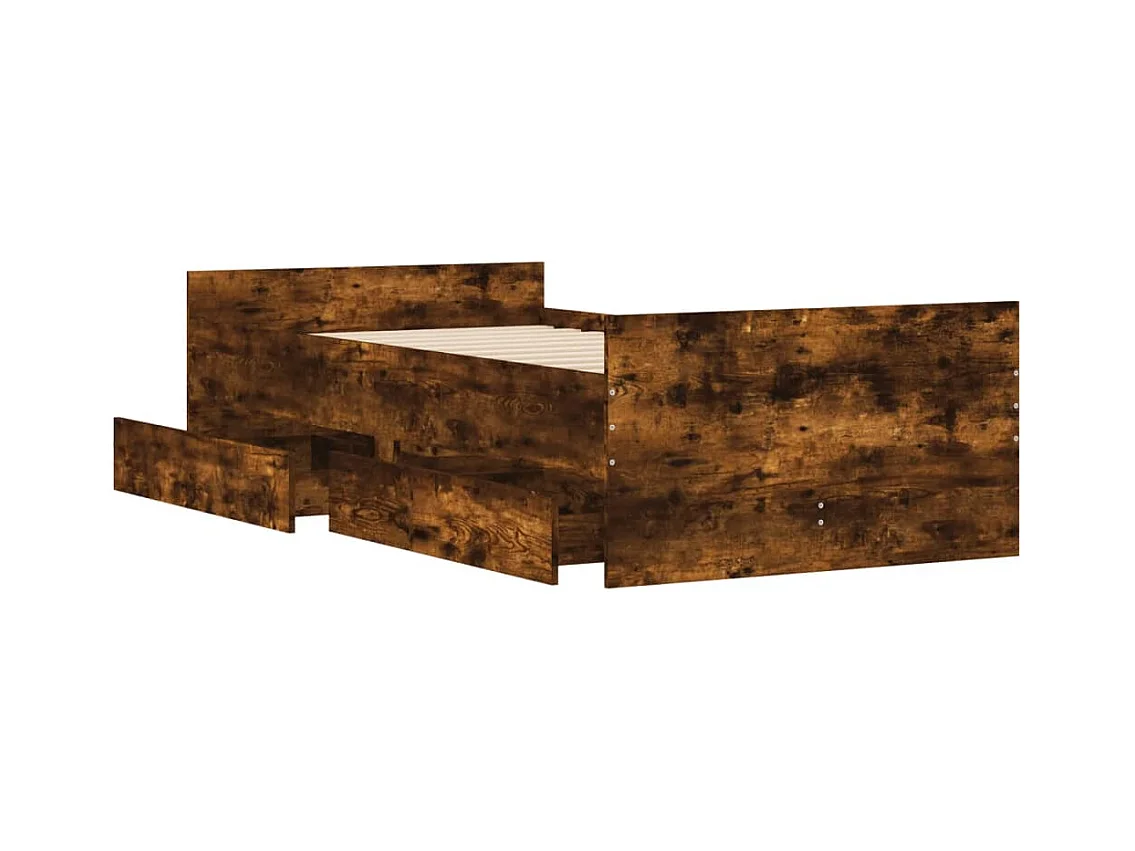 Cadre de lit avec tiroirs sans matelas chêne fumé 100x200 cm