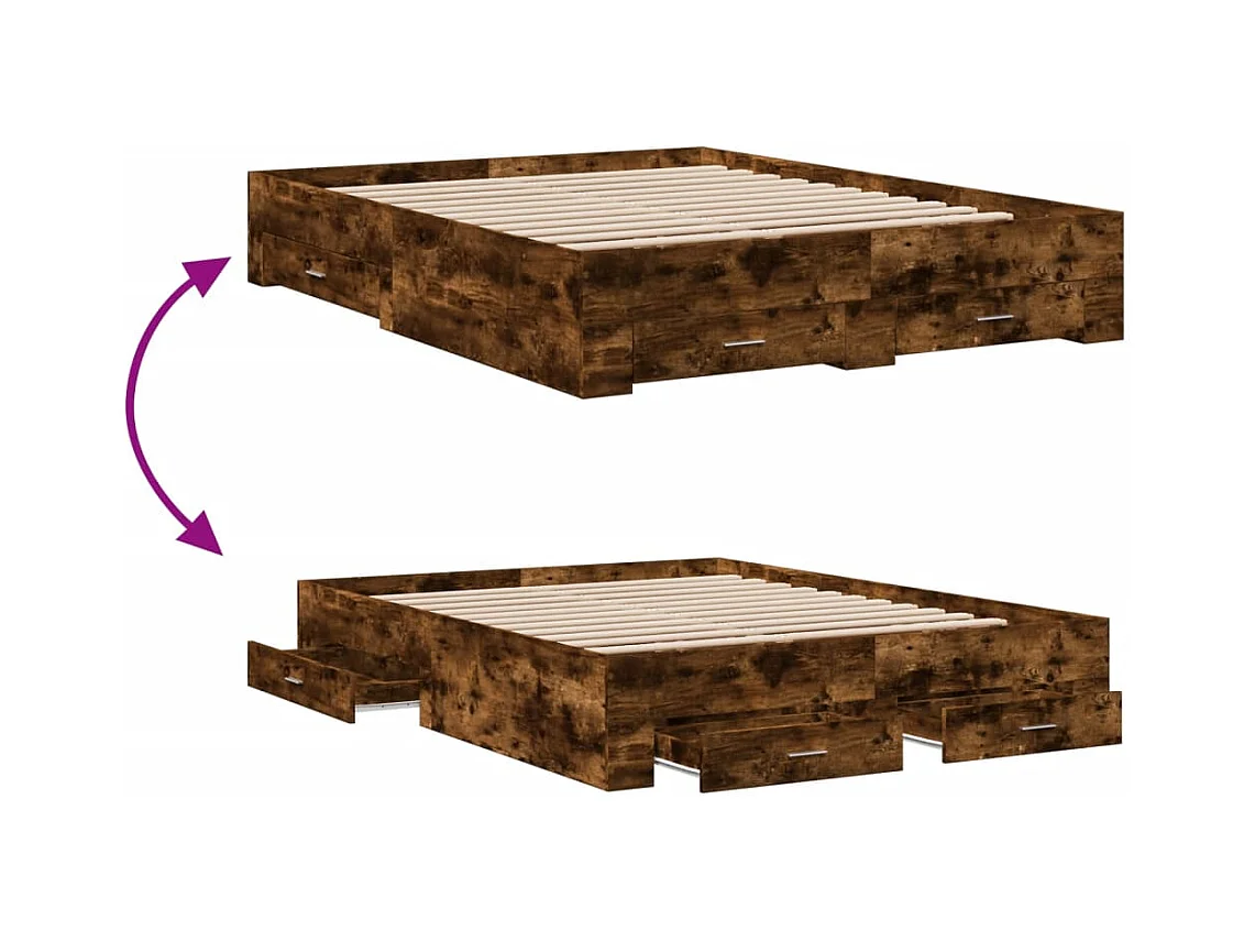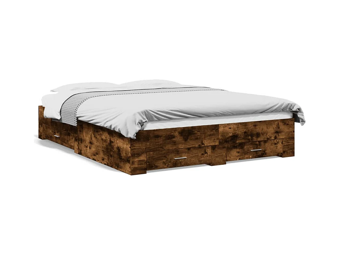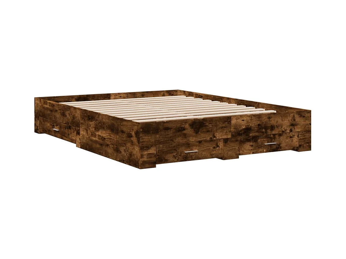 Cadre de lit avec tiroirs sans matelas chêne fumé 140x200 cm