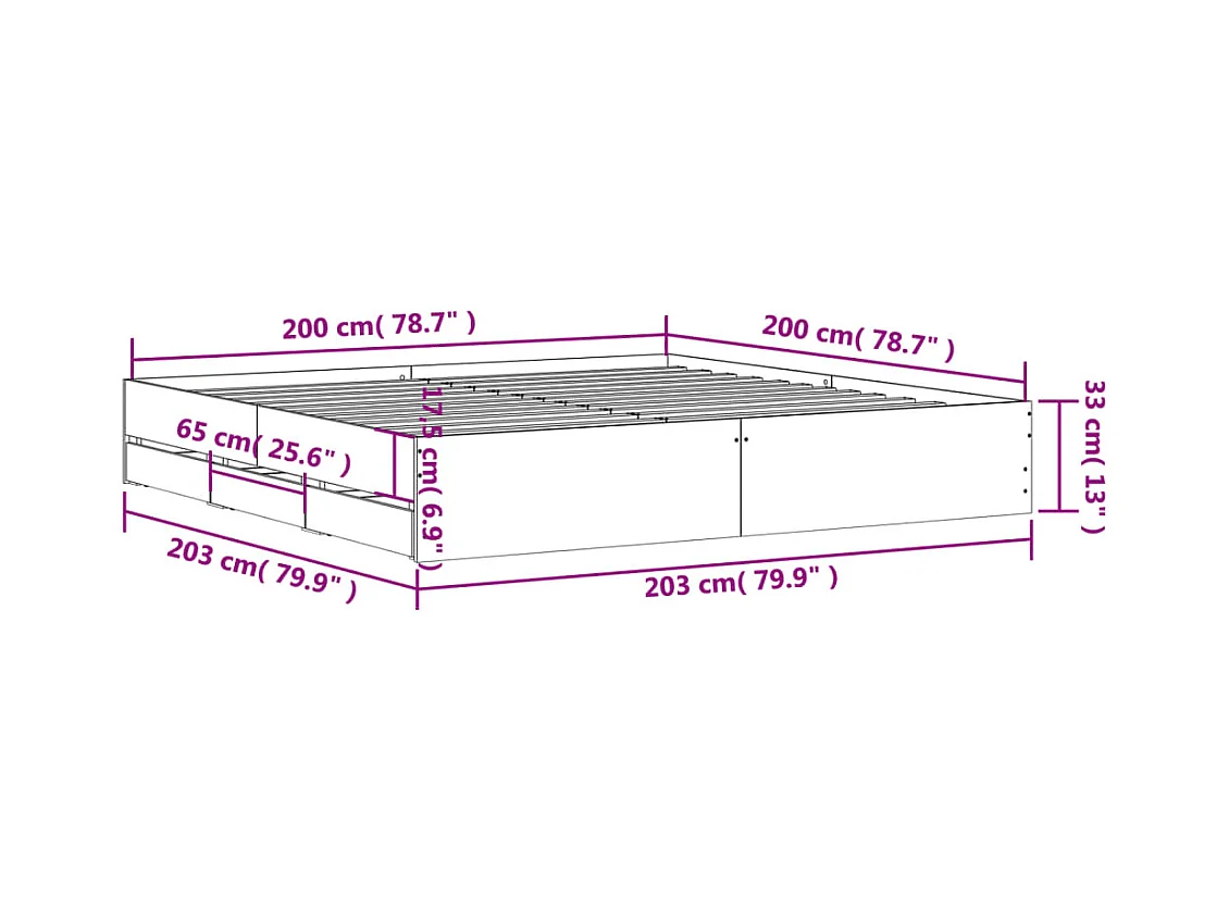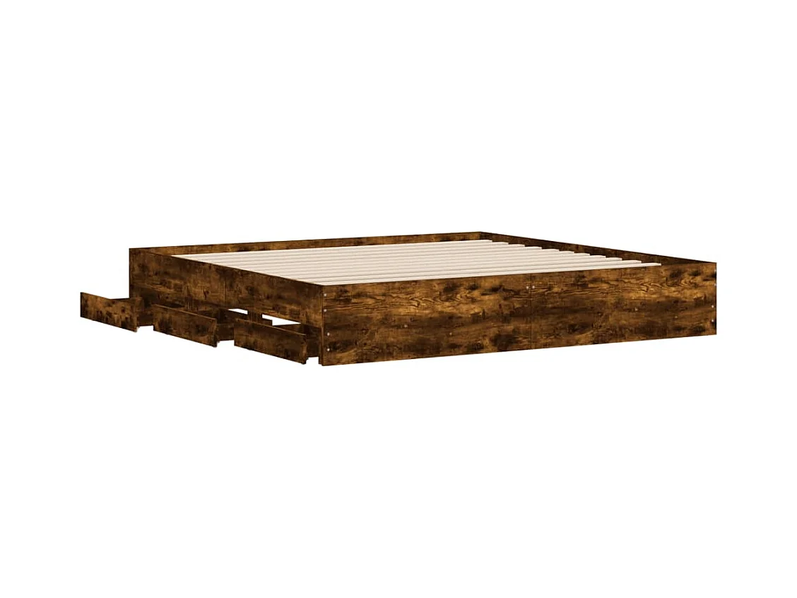 Cadre de lit avec tiroirs sans matelas chêne fumé 200x200 cm