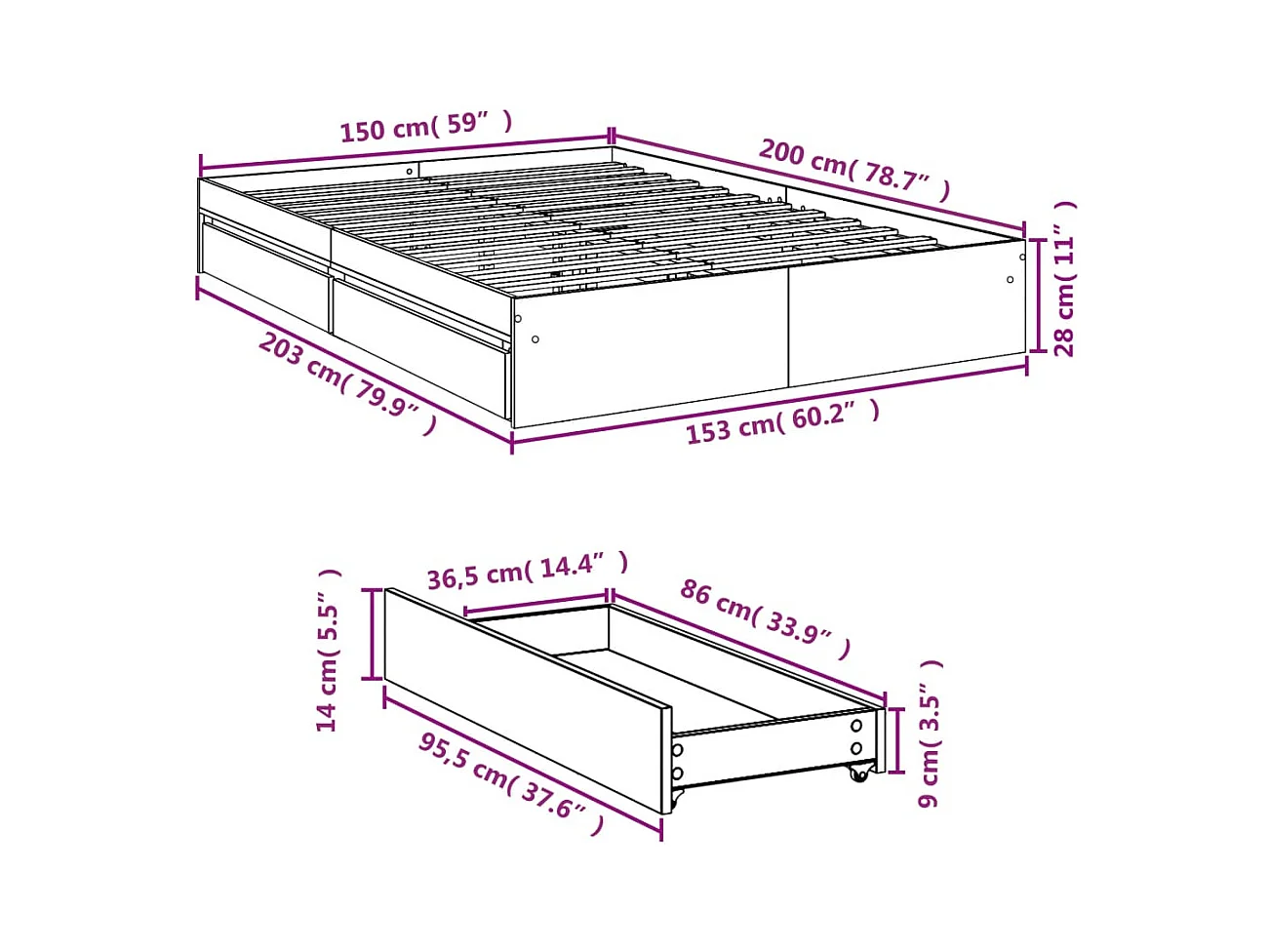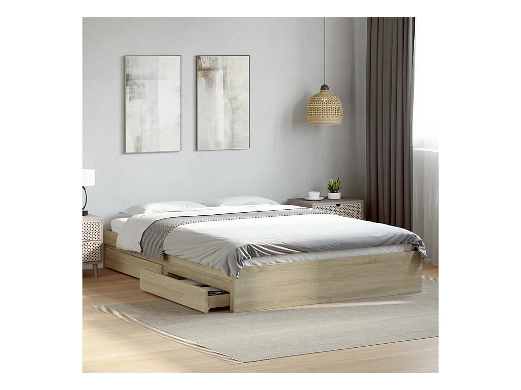 Cadre de lit avec tiroirs sans matelas chêne sonoma 150x200 cm