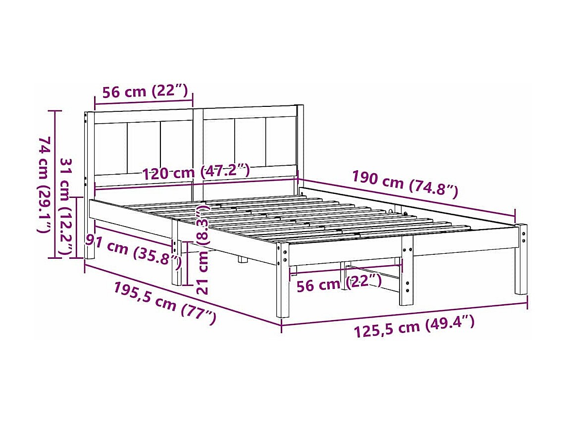 Cadre de lit sans matelas blanc 120x190 cm bois de pin massif