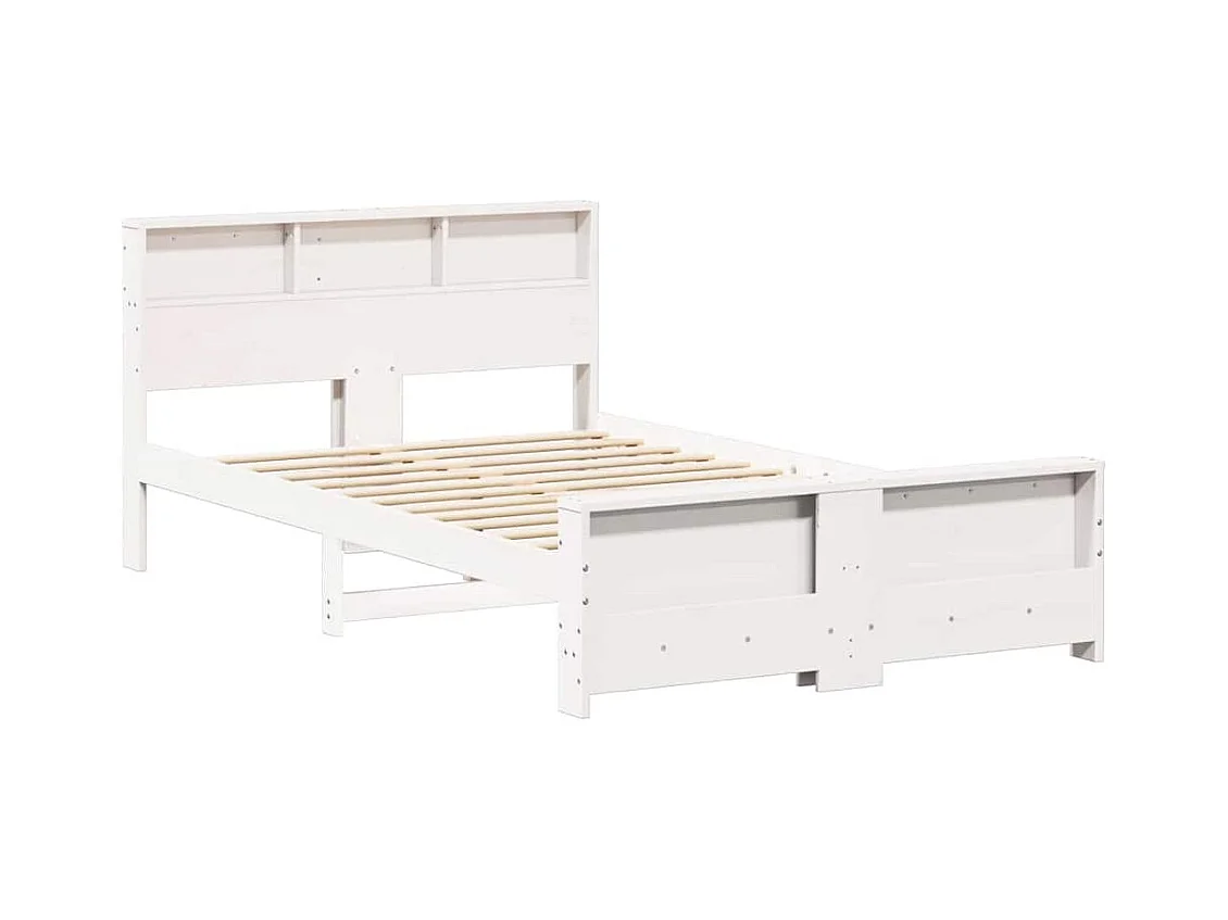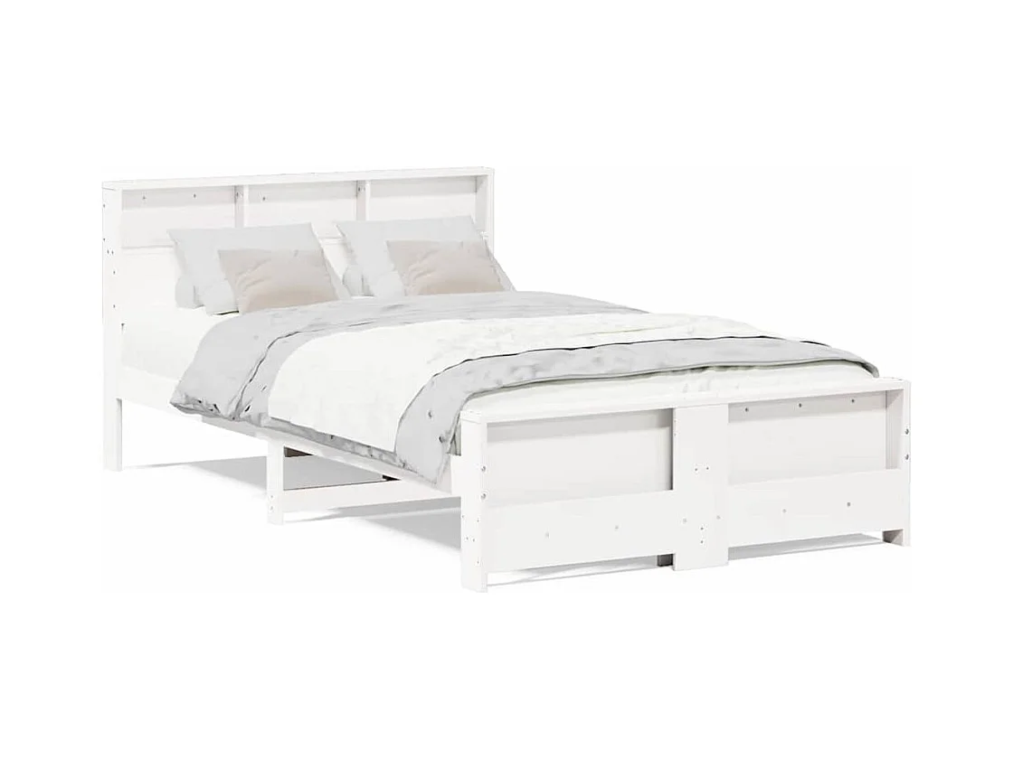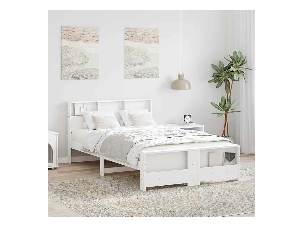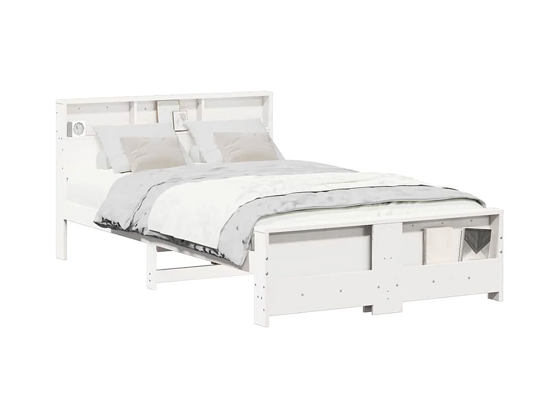 Lit double blanc 120x200 cm bois de pin massif FR33044