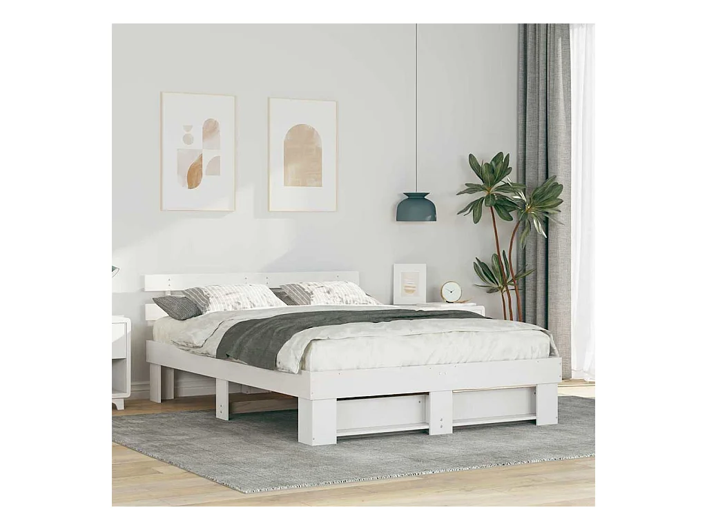 Cadre de lit Blanc 150 x 200 cm Bois massif en pin