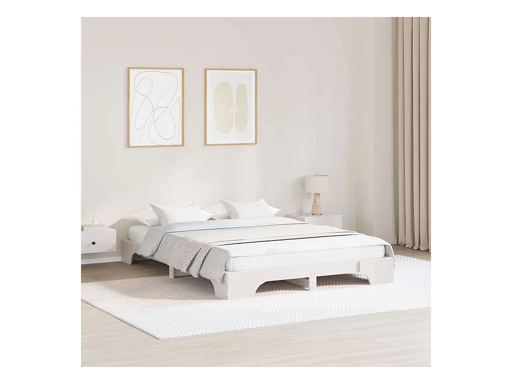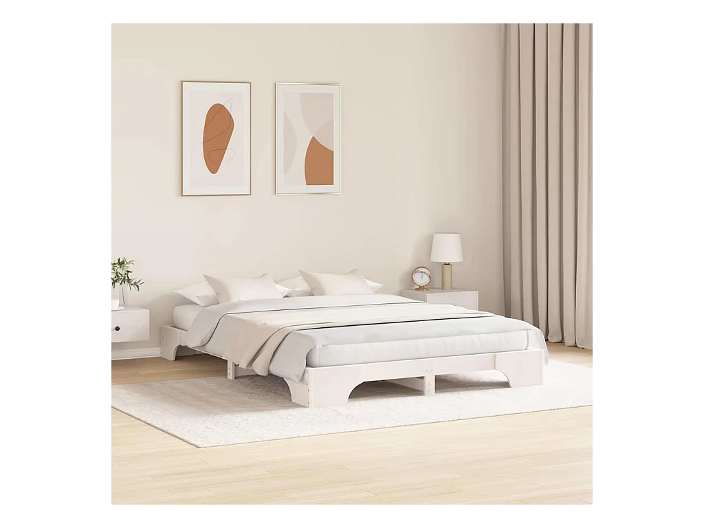 Cadre de lit Blanc 150 x 200 cm Bois massif en pin