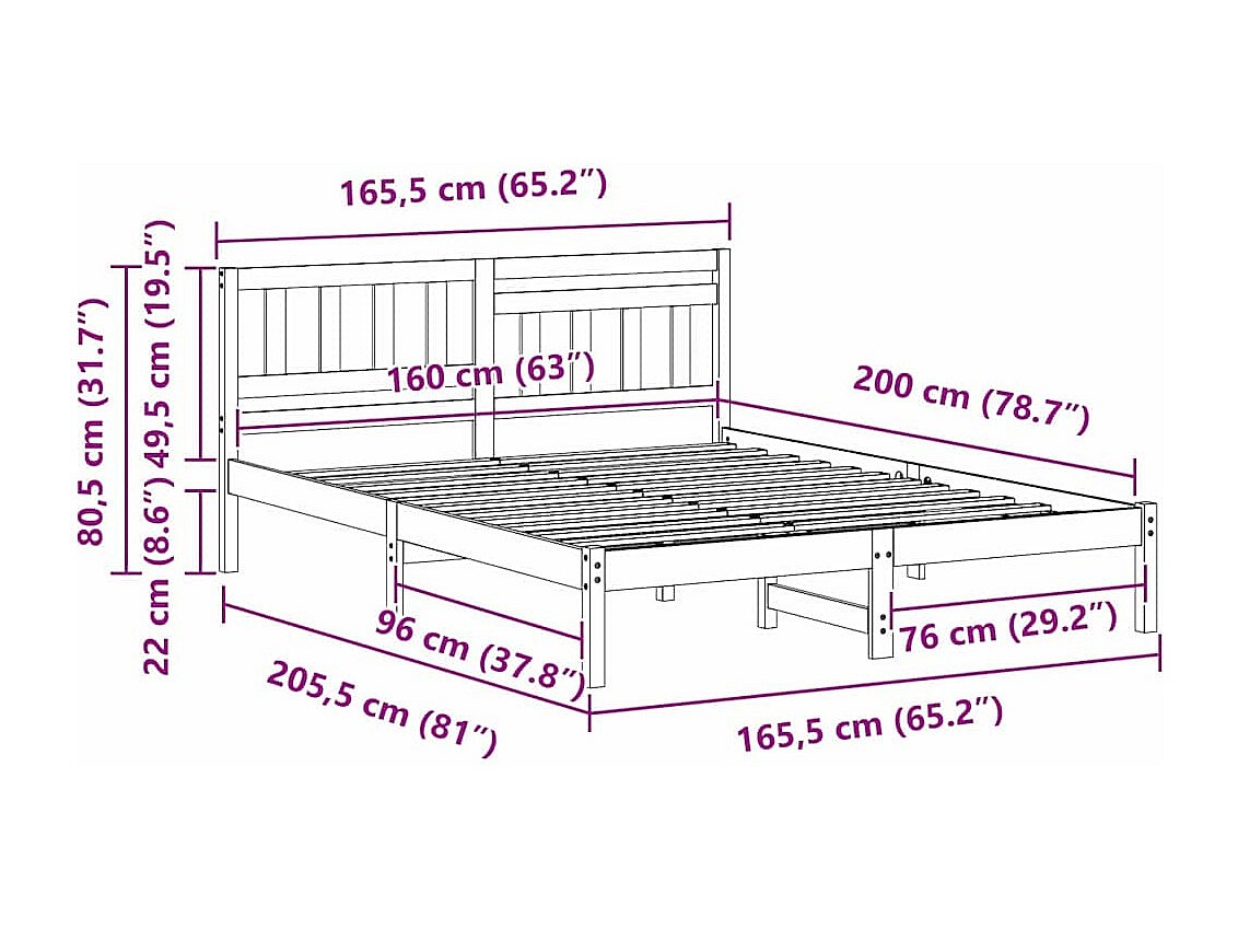 Cadre de lit Blanc 160 x 200 cm Bois massif en pin