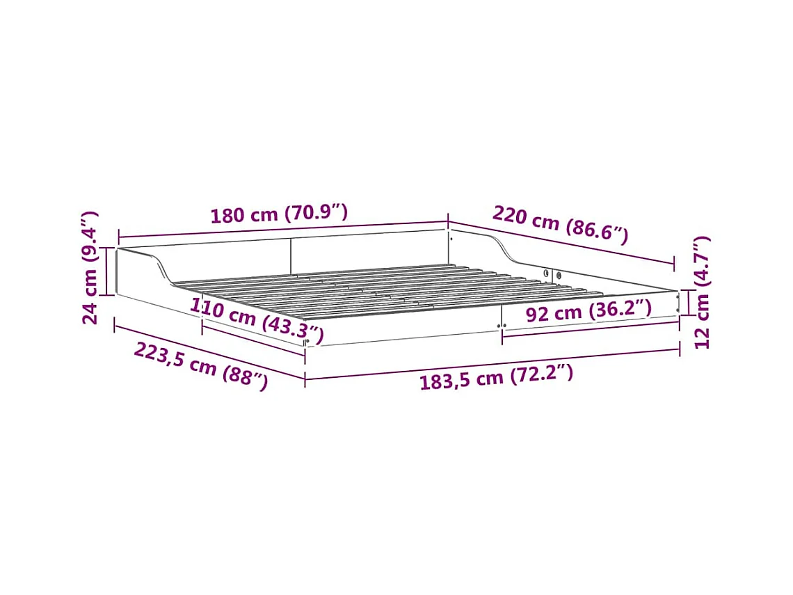 Cadre de lit Blanc 180 x 220 cm Bois massif en pin