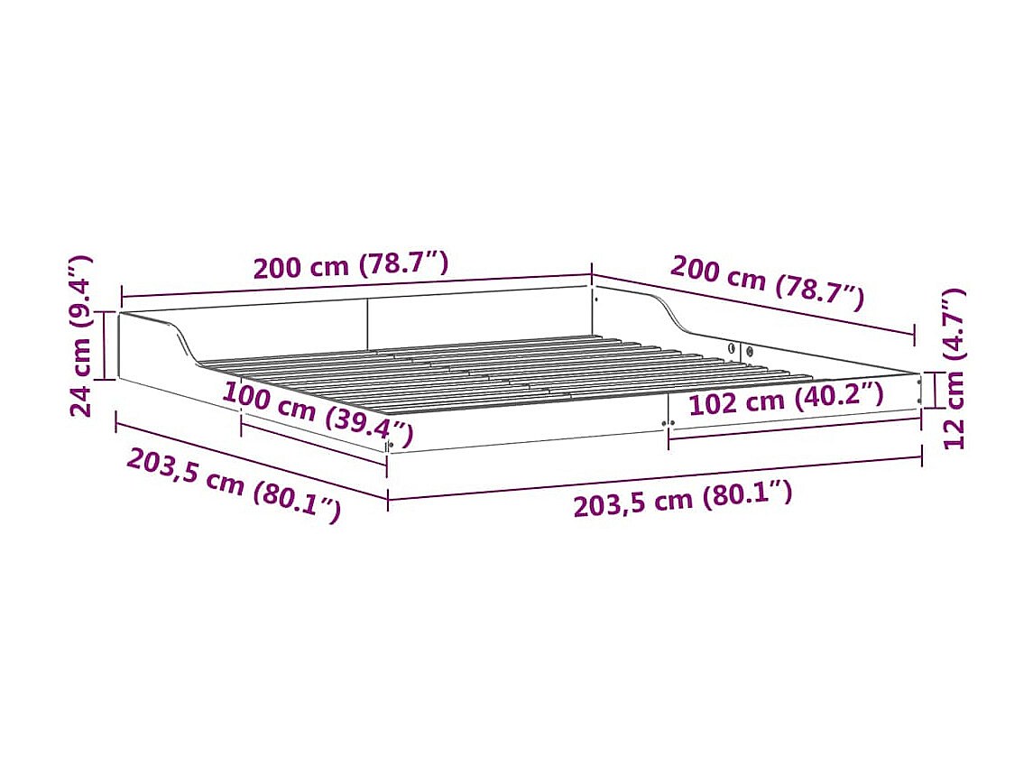 Cadre de lit Blanc 200 x 200 cm Bois massif en pin