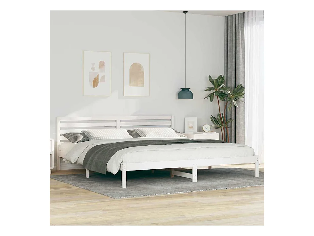 Cadre de lit Blanc 200 x 220 cm Bois massif en pin