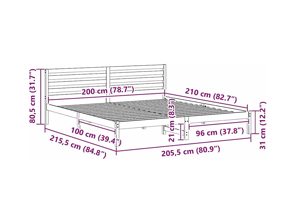 Cadre de lit extra long sans matelas 200x210 cm bois massif pin